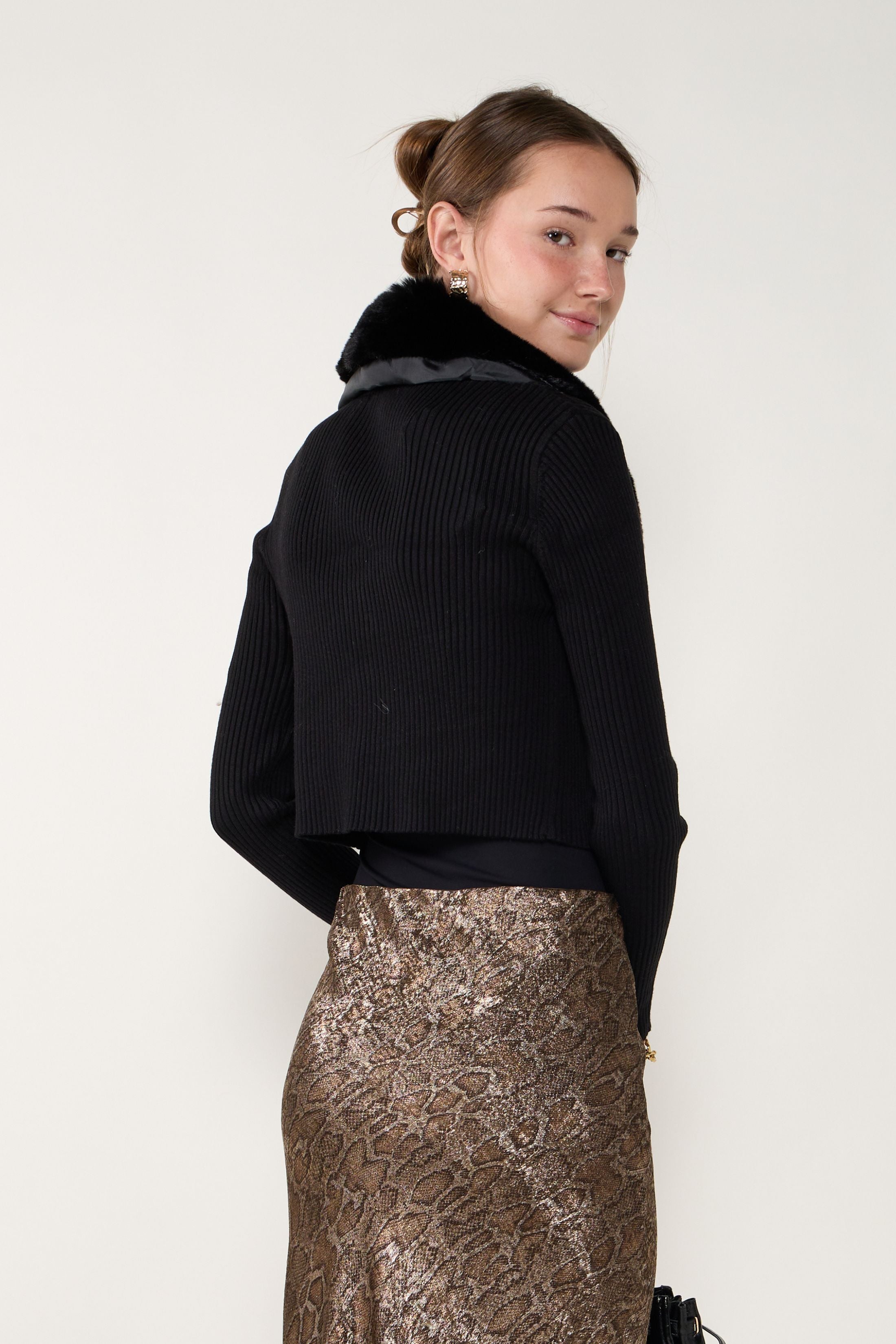 The Illona Faux Fur Collar Cardigan blends soft comfort with a touch of glam, making it the perfect statement layer for cooler days. Its cozy knit and removable faux fur collar offer both versatility and style, whether you’re dressing up or keeping it casual. A chic piece that adds instant polish to any outfit.