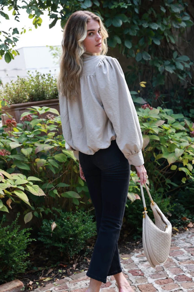 Effortlessly chic, this beige jacket features a round neckline and short sleeves for a modern, minimalist look. Crafted from soft, comfortable fabric, its balloon-hem silhouette adds a subtle, playful volume, making it perfect for layering over dresses, tops, or tailored pieces.