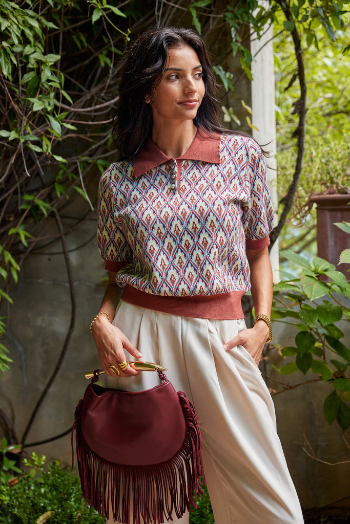 Christian Cowl Neck Elbow Sleeve Satin Top