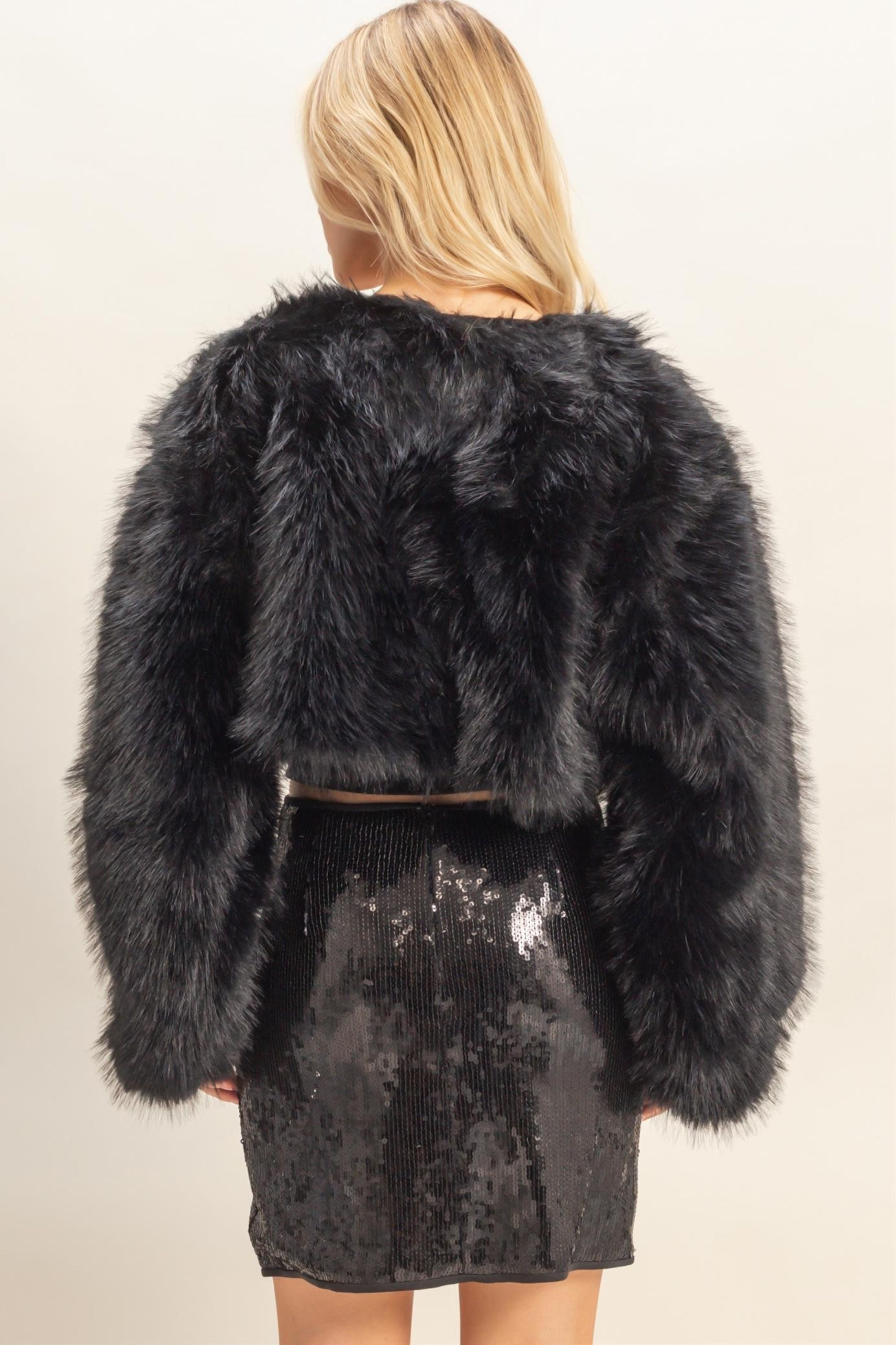 The Emmaline Crop Fur Coat adds a touch of luxe to any look with its soft faux fur and cropped silhouette. Perfect for nights out or special occasions, it’s the statement piece your winter wardrobe needs.