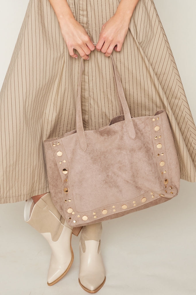 SALE - Dominique Faux Suede Quilted Shoulder Bag