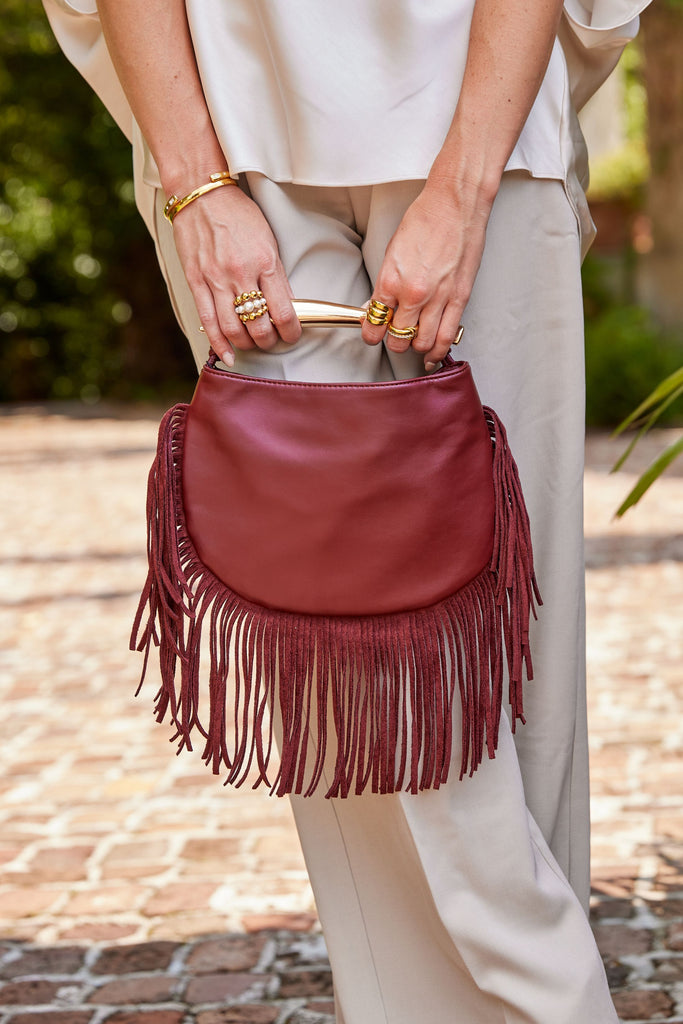 Cynthia Smooth Cylinder Tassel Shoulder Crossbody Bag