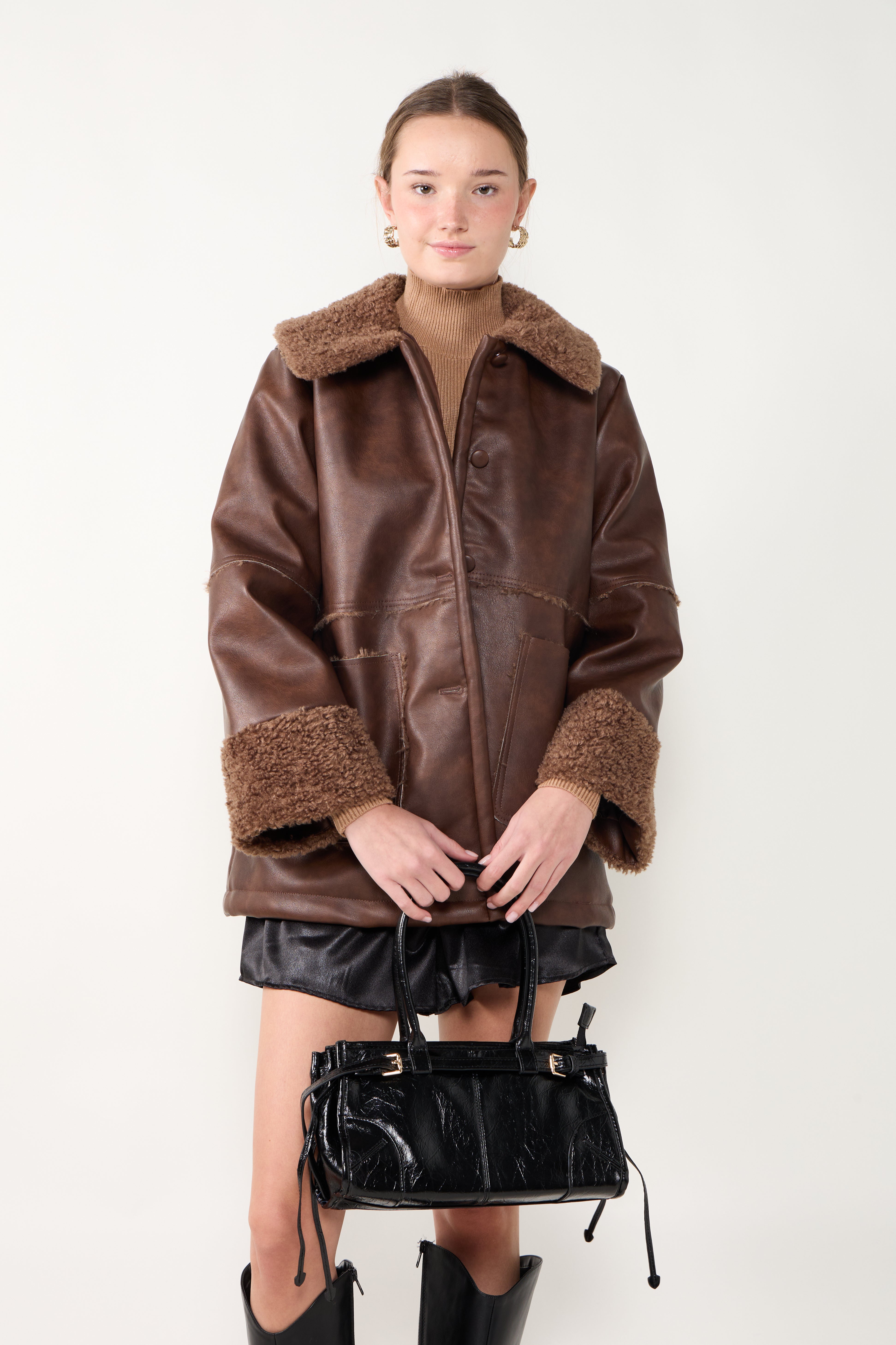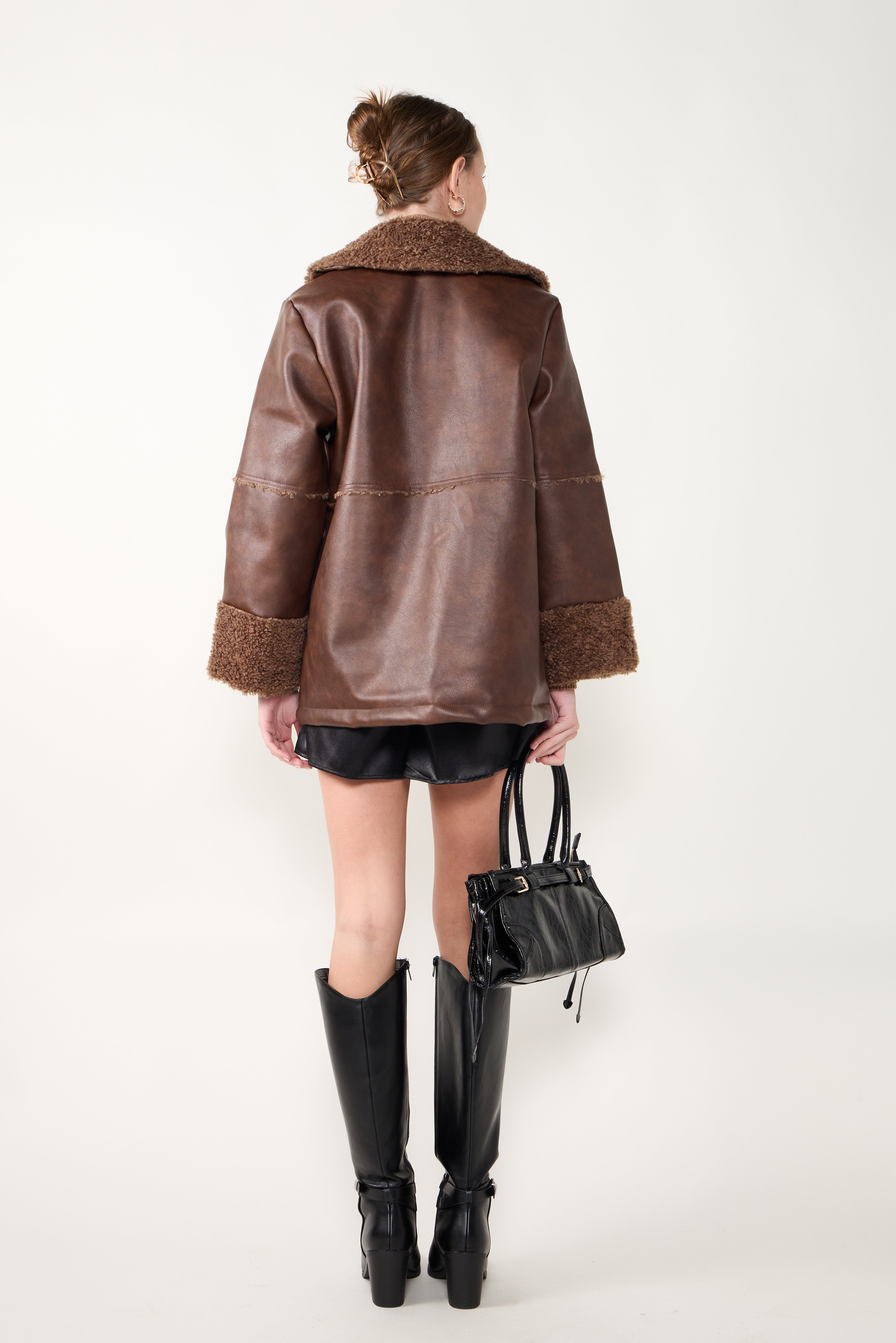 The Mila Shearling Jacket brings cozy warmth and modern style together in an effortlessly chic layer. Its soft faux shearling and sleek silhouette make it perfect for everyday wear, adding both comfort and polish to any outfit. A cold-weather essential you’ll reach for all season long.