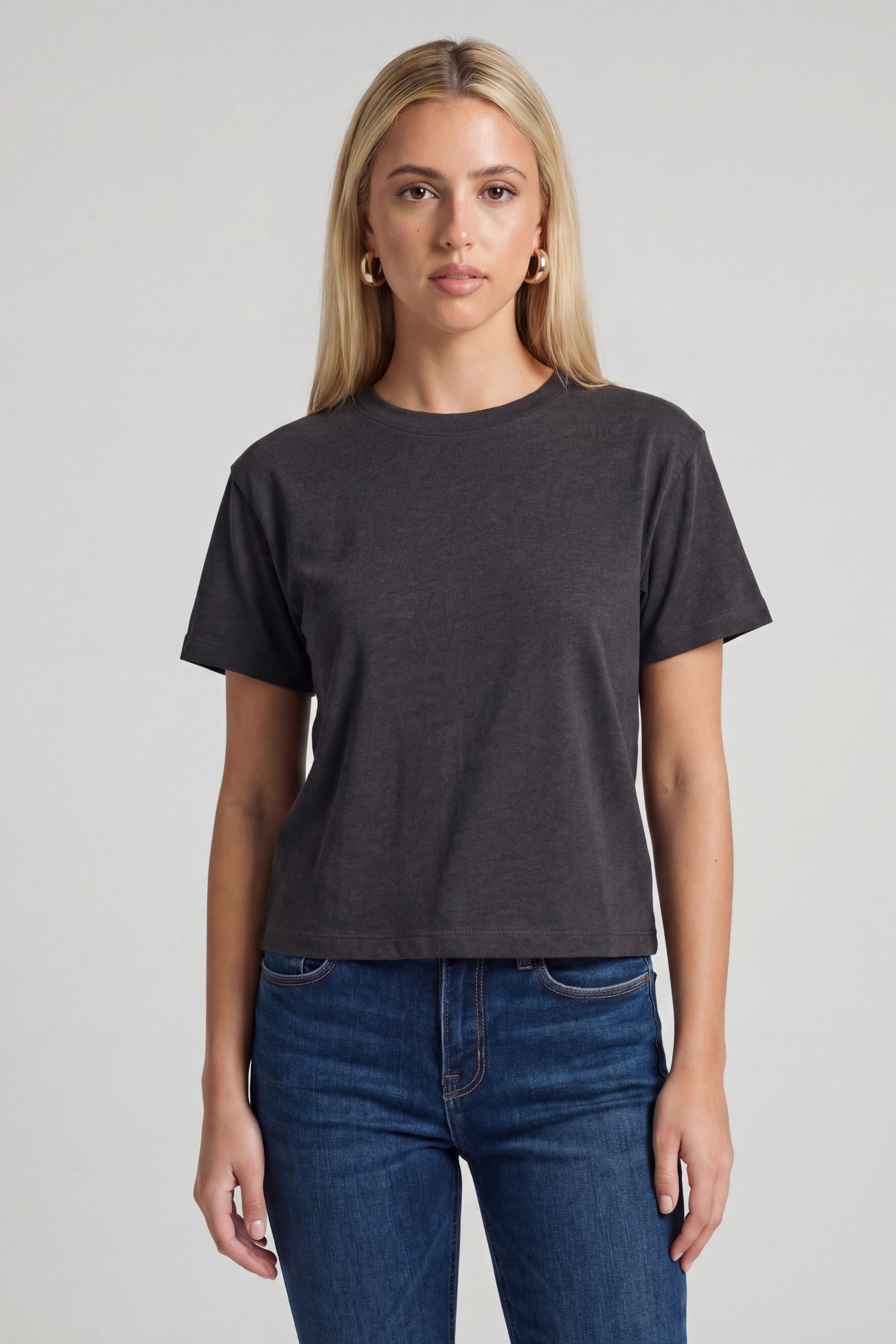 Keep it classic and effortlessly essential with the Haley Cotton Crew Neck Short Sleeve T-Shirt, designed with a clean silhouette and ultra-soft feel. This everyday staple is perfect for layering or wearing on its own for a polished, casual look.