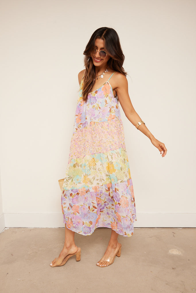 Layne Mixed Print Midi Dress