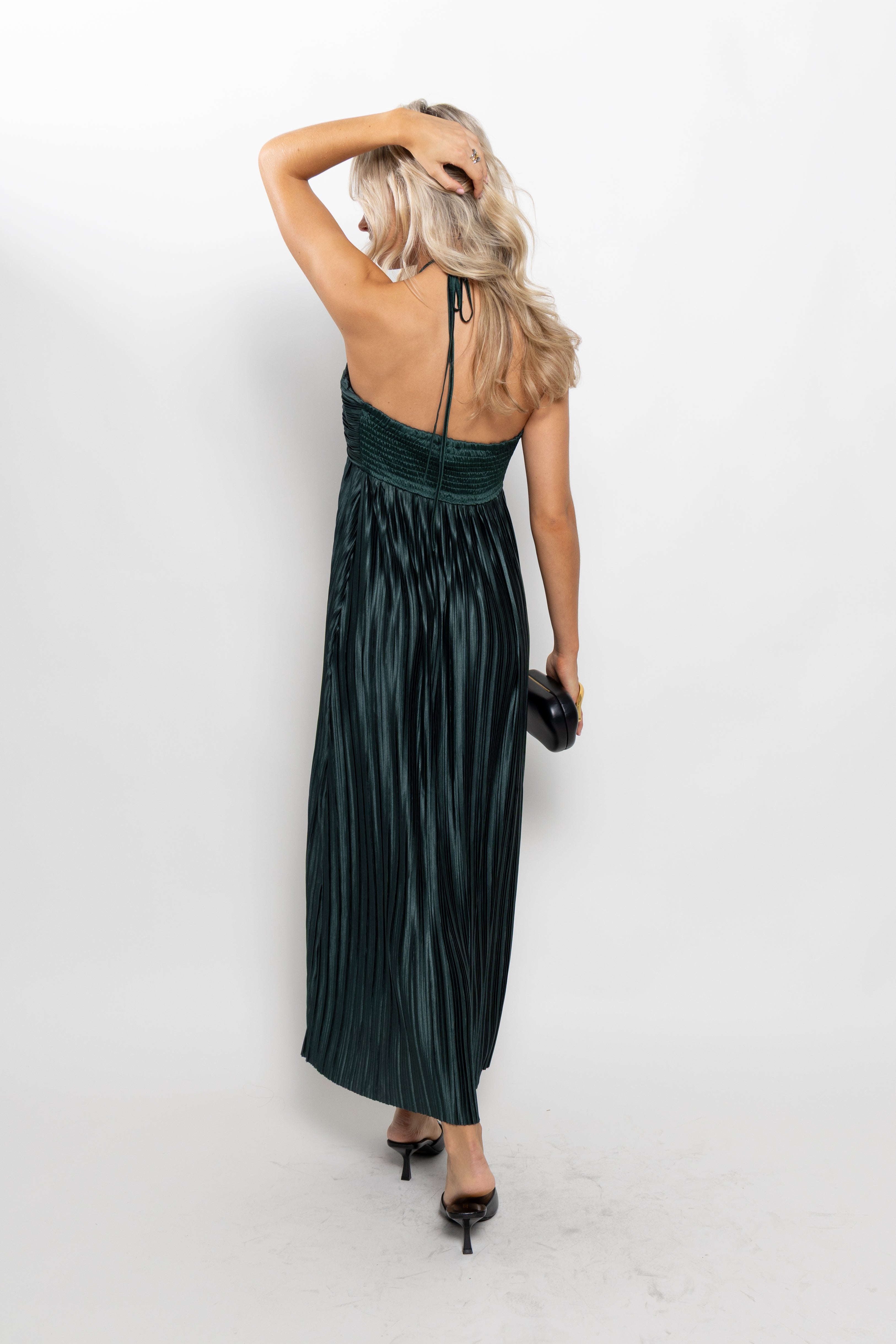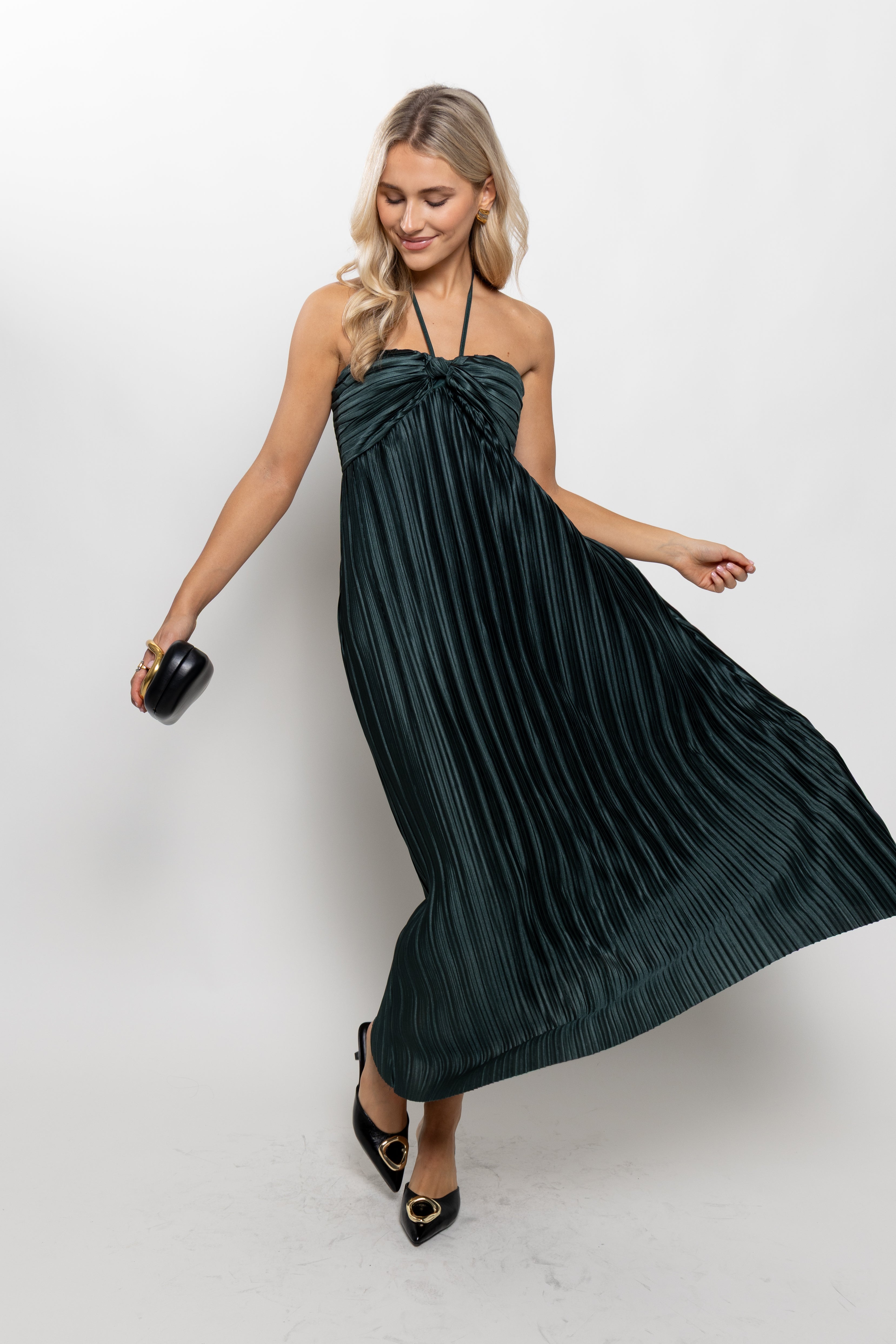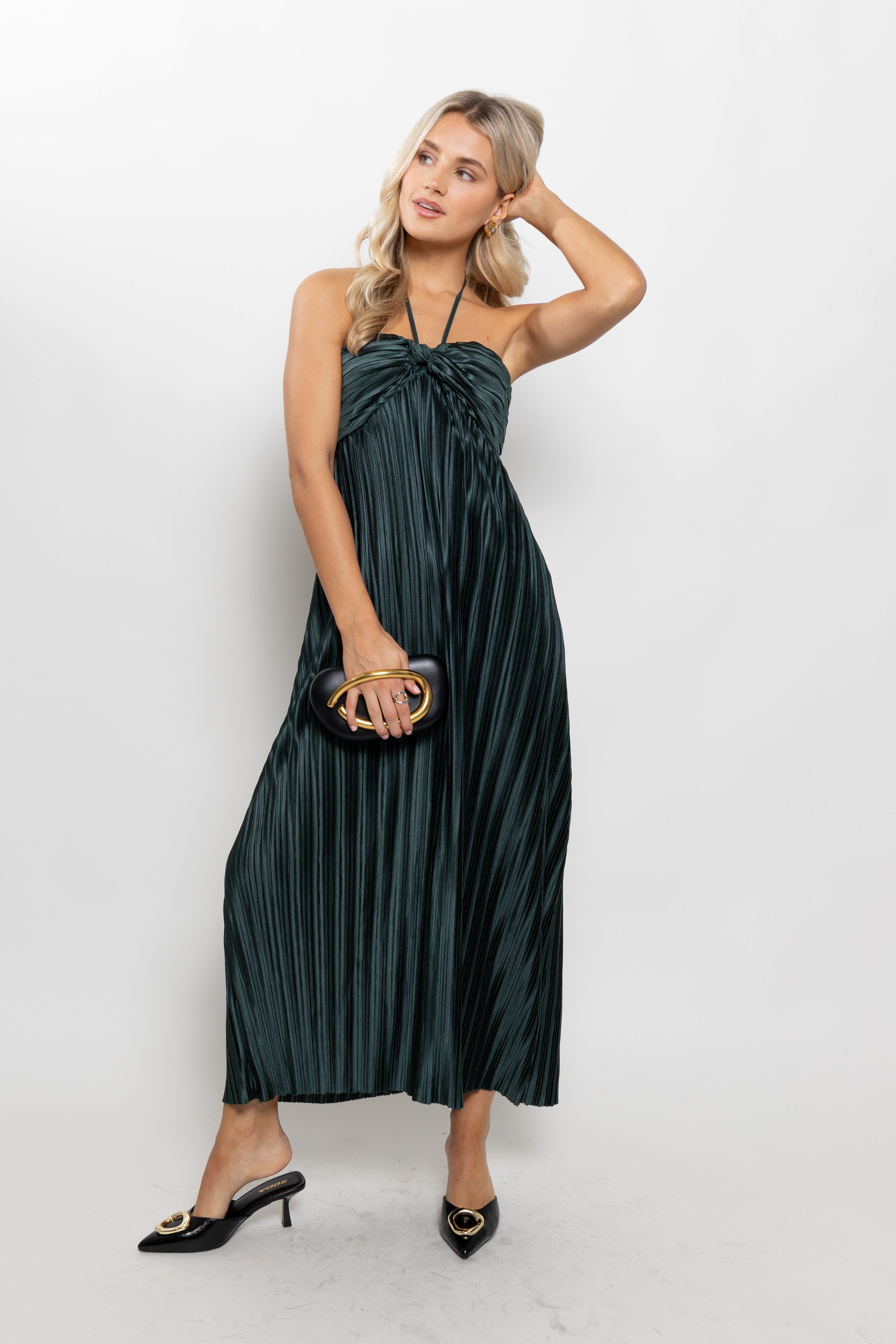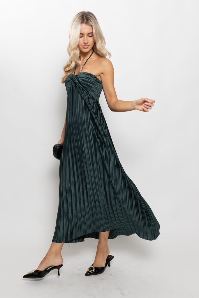 Elegant and eye-catching, the Brooklyn Maxi Dress features a chic halter neckline and flowing pleated design for a timeless silhouette. Perfect for special occasions, it’s a standout piece that moves beautifully with every step.