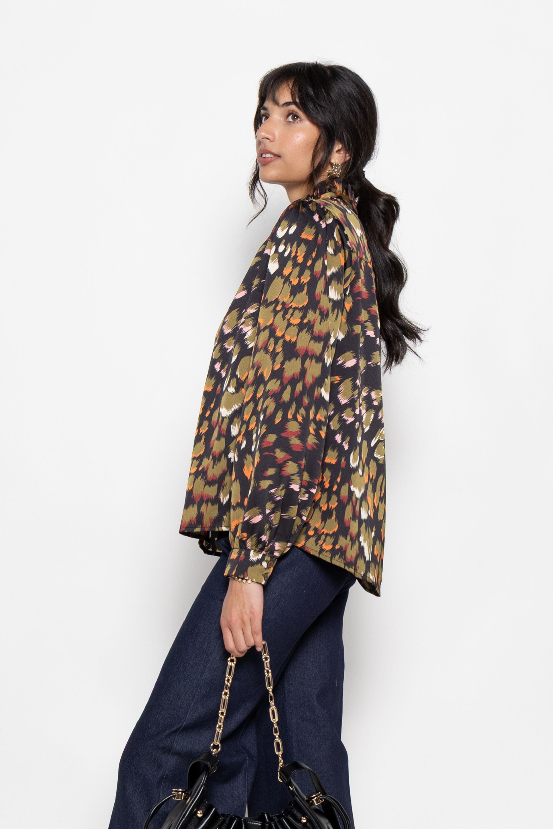 The Perry Abstract Print Blouse brings a modern twist to a classic silhouette with its bold, eye-catching print. Lightweight and flowy, it’s the perfect statement piece for workdays or weekends.