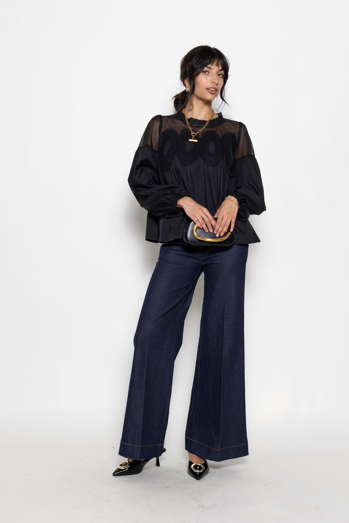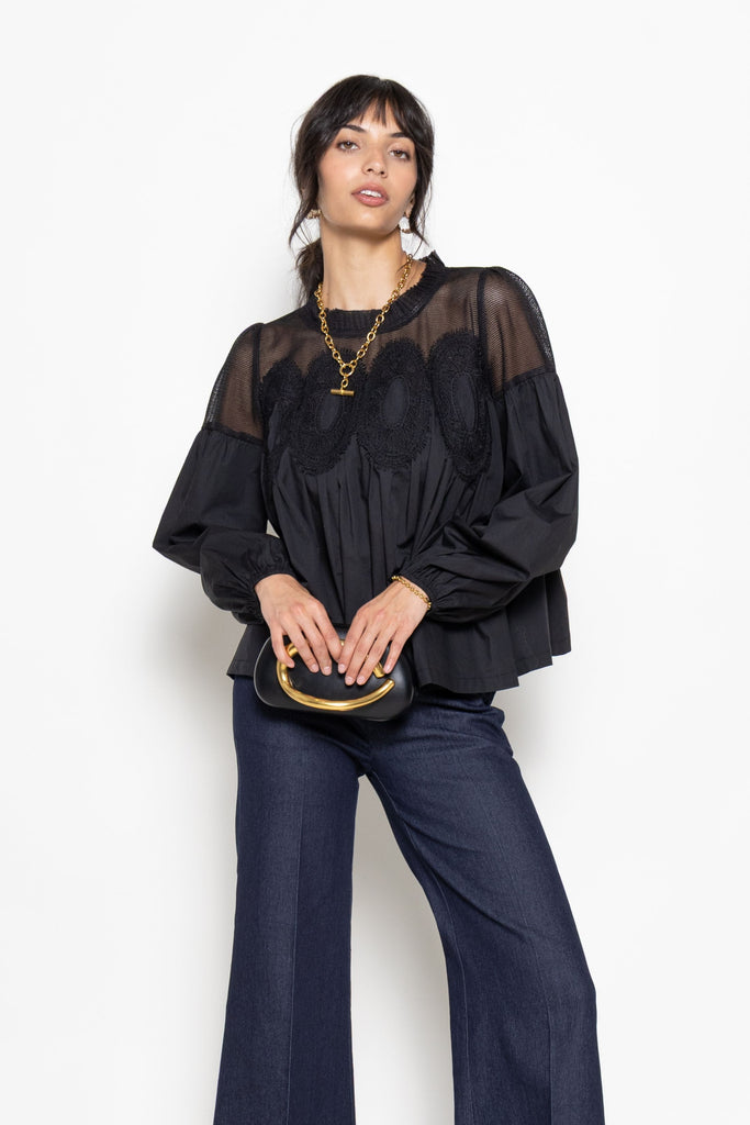 Lilah Lace Applique Long Sleeve Blouse