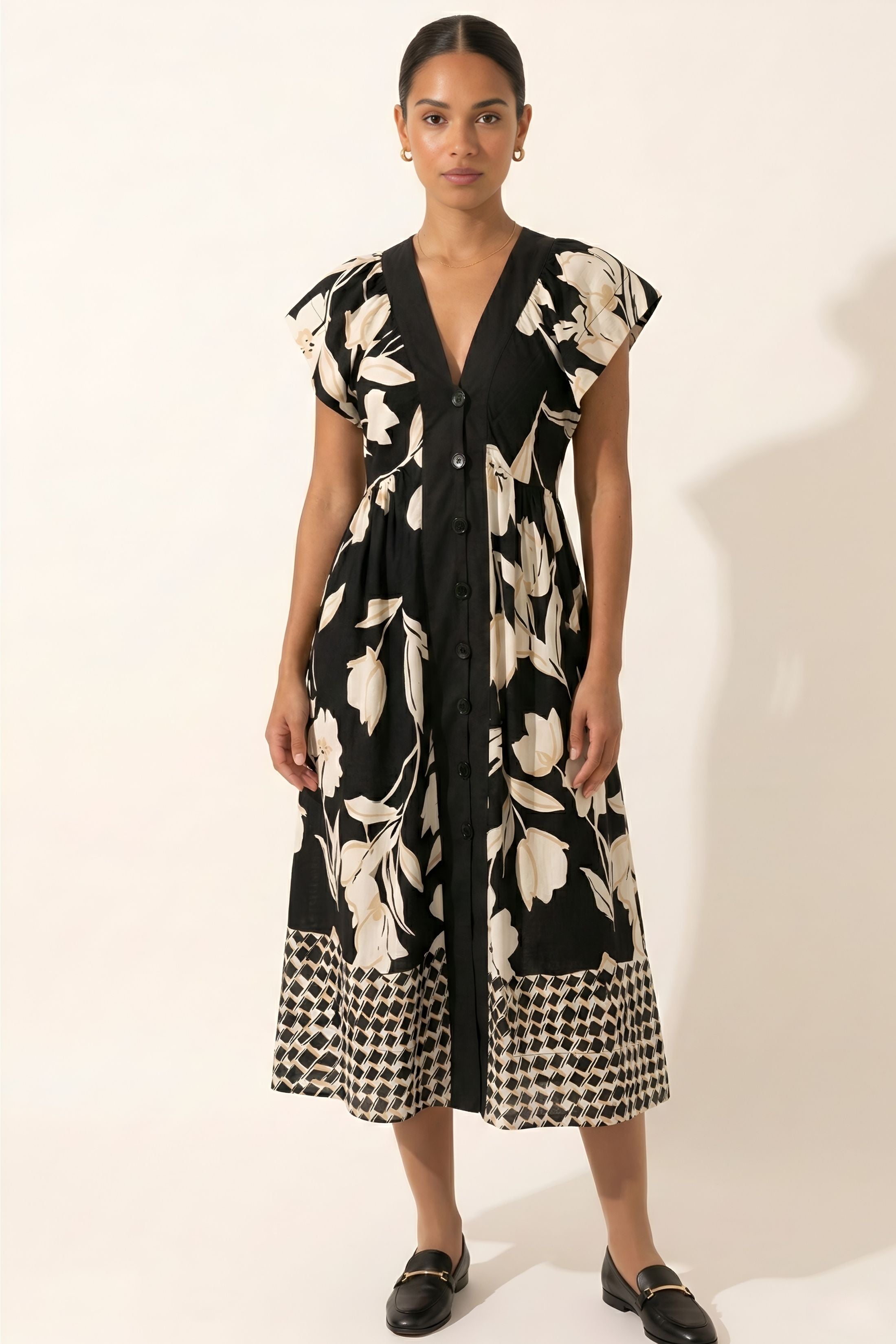 The Katie V Neck Floral Dress blends a romantic floral print with a flattering neckline for an effortlessly feminine look. Designed with an easy, flowy silhouette, it’s perfect for brunches, showers, or warm-weather occasions. Sweet, timeless, and beautifully versatile.