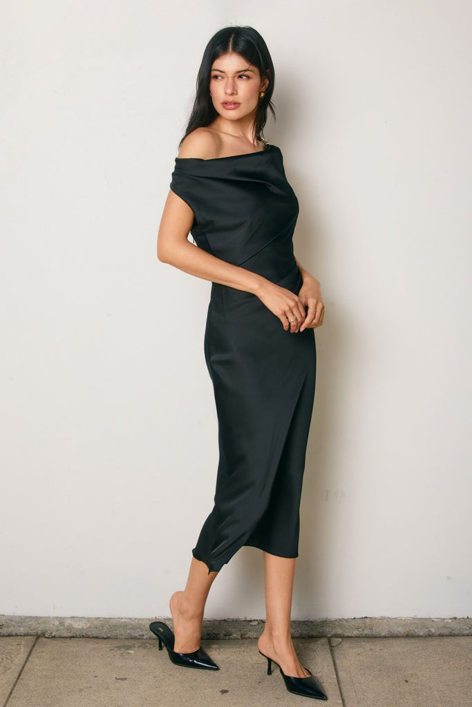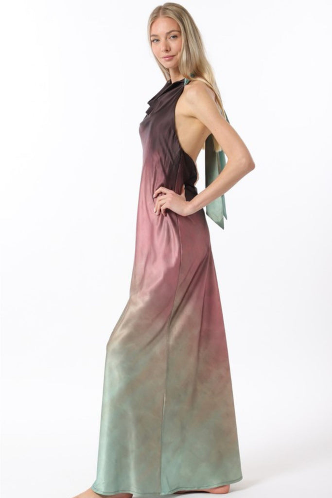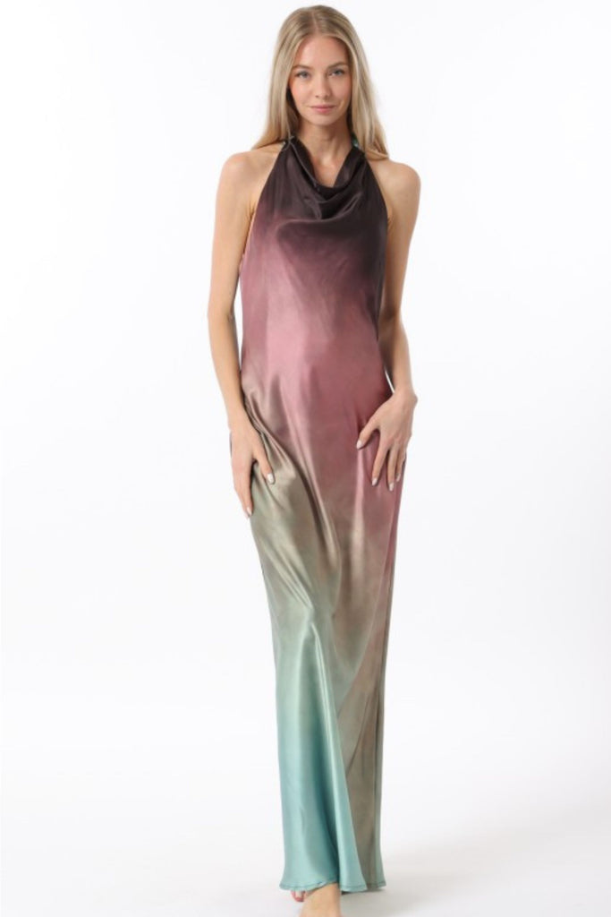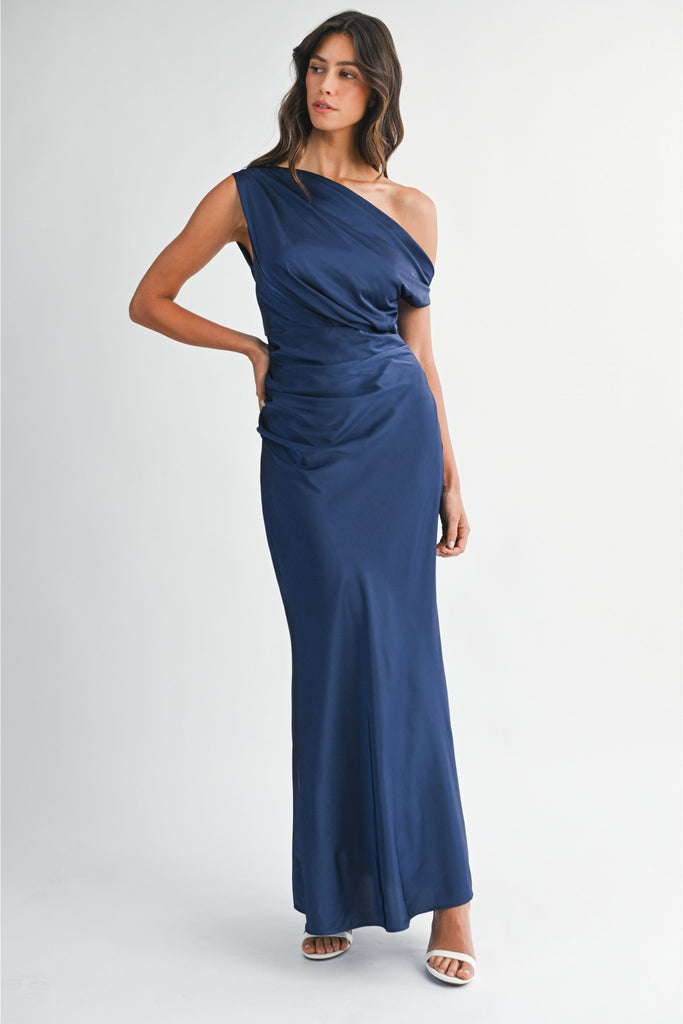 Olivia Ombre Satin Asymmetrical One Sleeve Dress