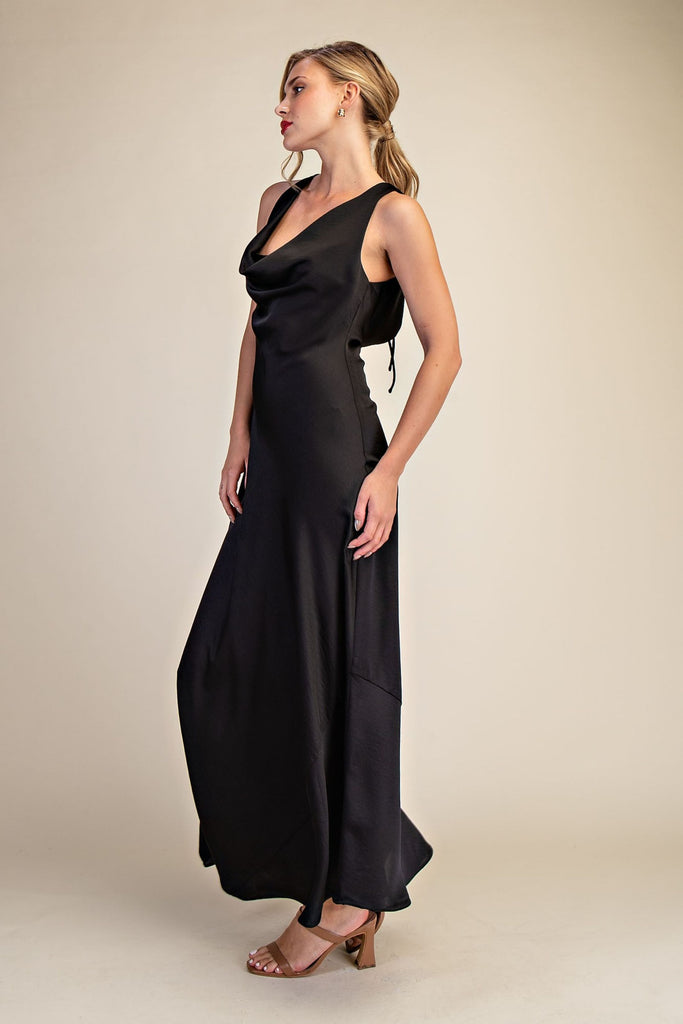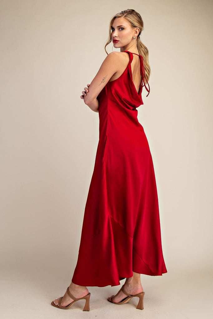 The Noelle Satin Maxi Dress exudes timeless sophistication with its silky finish and elegant drape. Perfect for weddings, parties, or holiday soirées, it’s made to shine at any occasion.