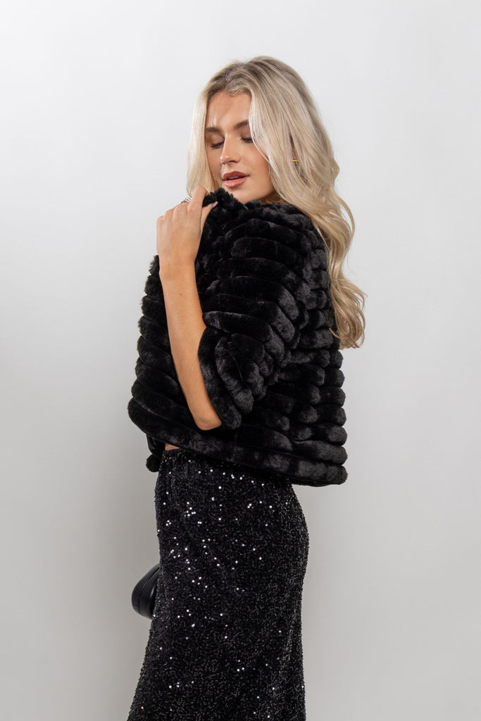The Mary Faux Fur Crop Jacket brings cozy warmth with a stylish, modern twist. Its plush faux fur and cropped silhouette make it perfect for layering over dresses, tops, or casual outfits for a chic, elevated look. Soft, versatile, and effortlessly on-trend.