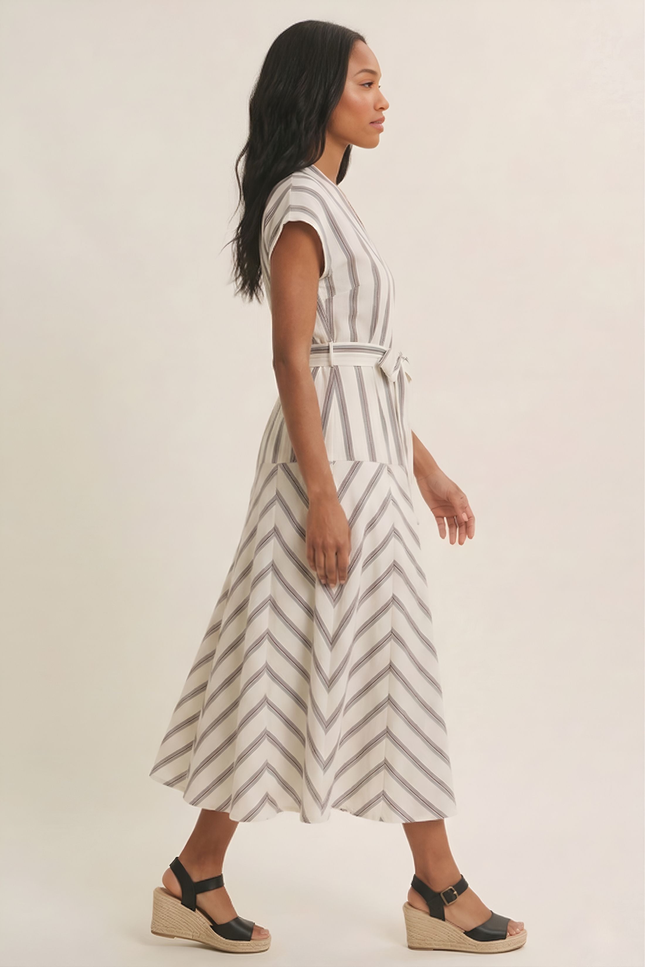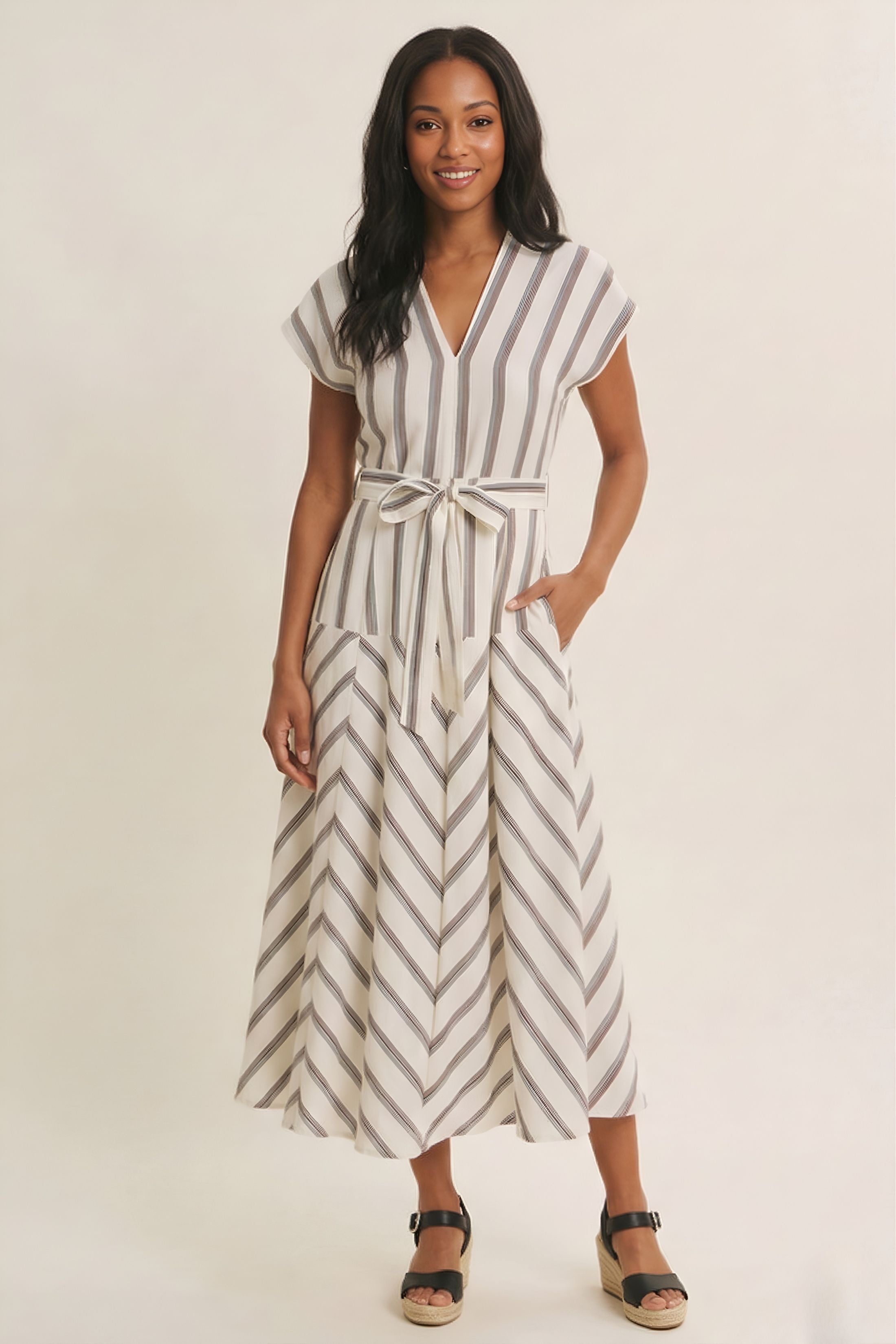 The Georgia Striped V Neck Maxi Dress offers an effortless blend of classic and flattering with its timeless stripe pattern and elongating neckline. The flowing maxi silhouette creates easy movement, making it perfect for warm days, vacations, or casual gatherings. Chic, comfortable, and endlessly versatile.