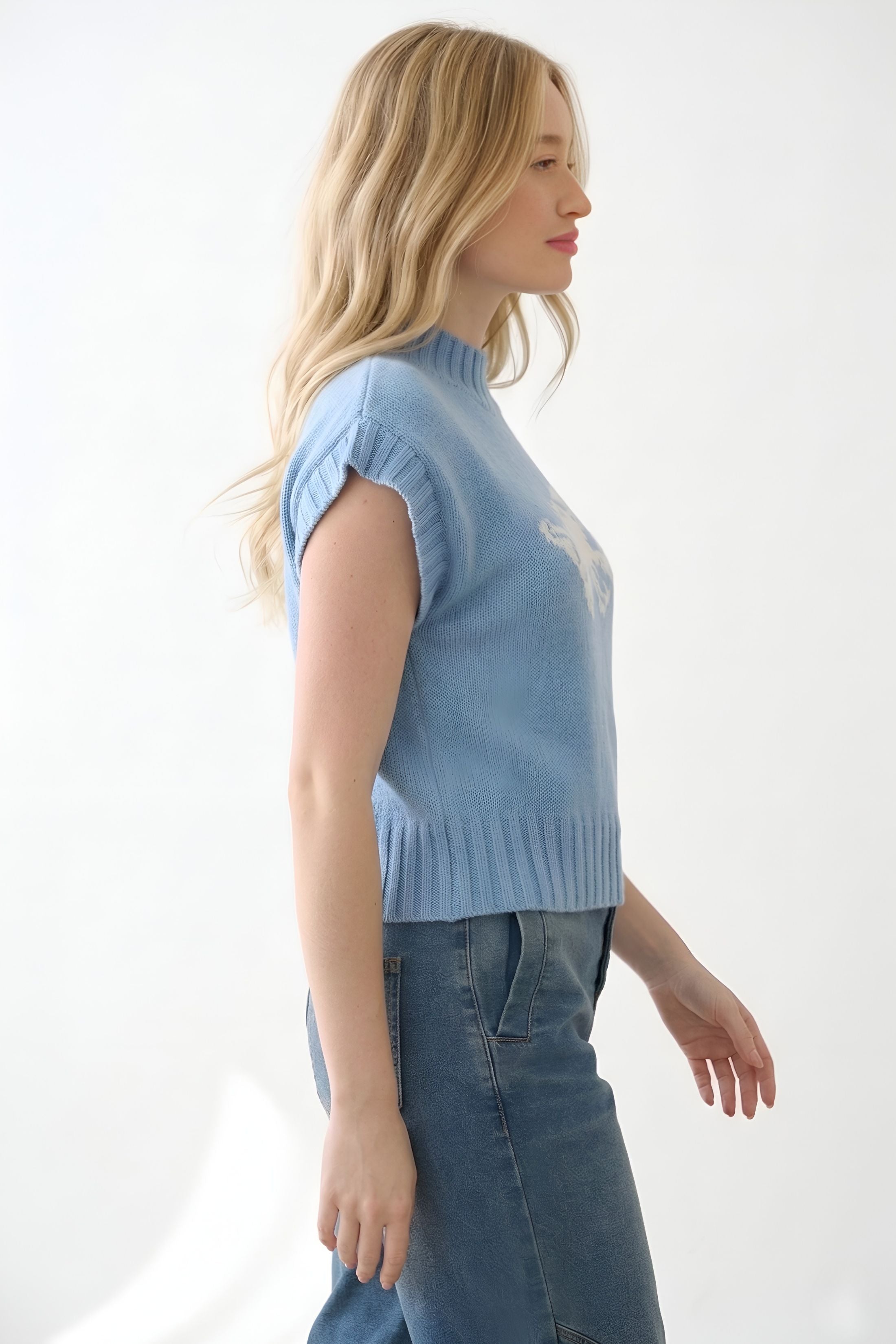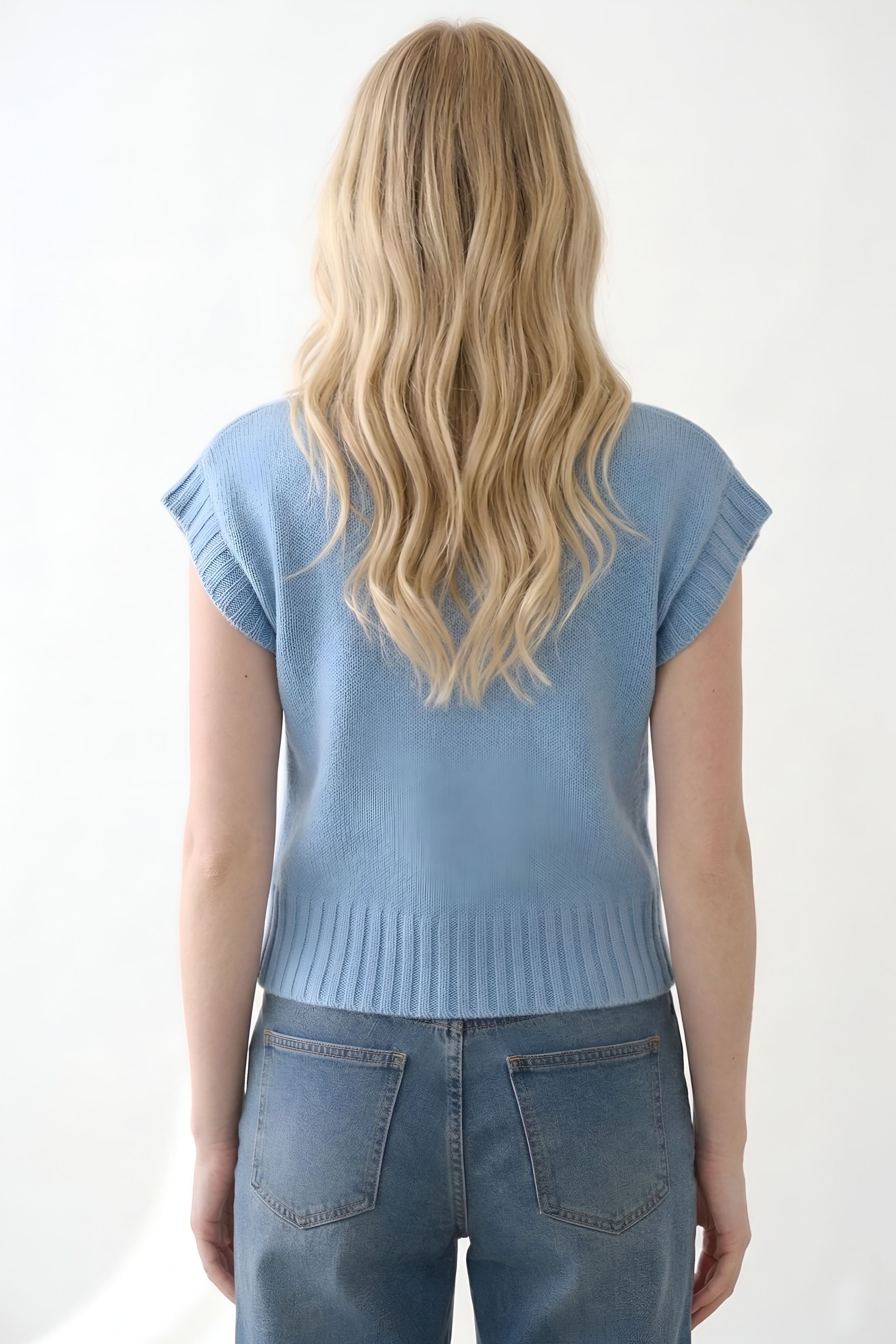 - Sleeveless knit design