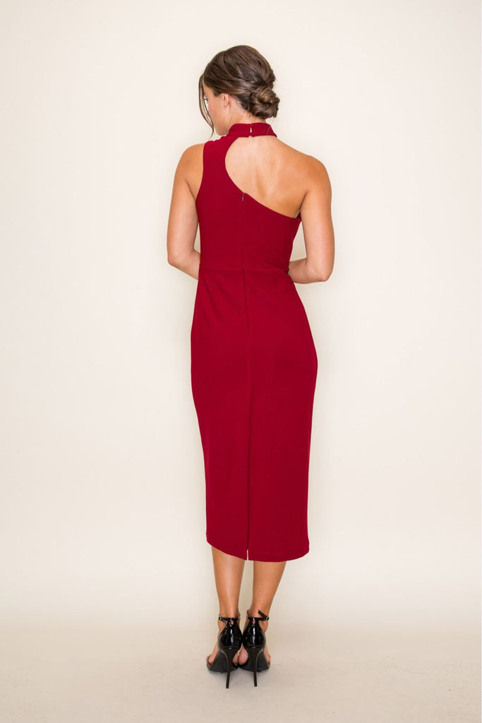 The Bri Gold Halter Midi Dress is a stunning statement piece featuring a shimmering finish and elegant halter neckline. Perfect for holiday parties or special occasions, it radiates effortless glamour.