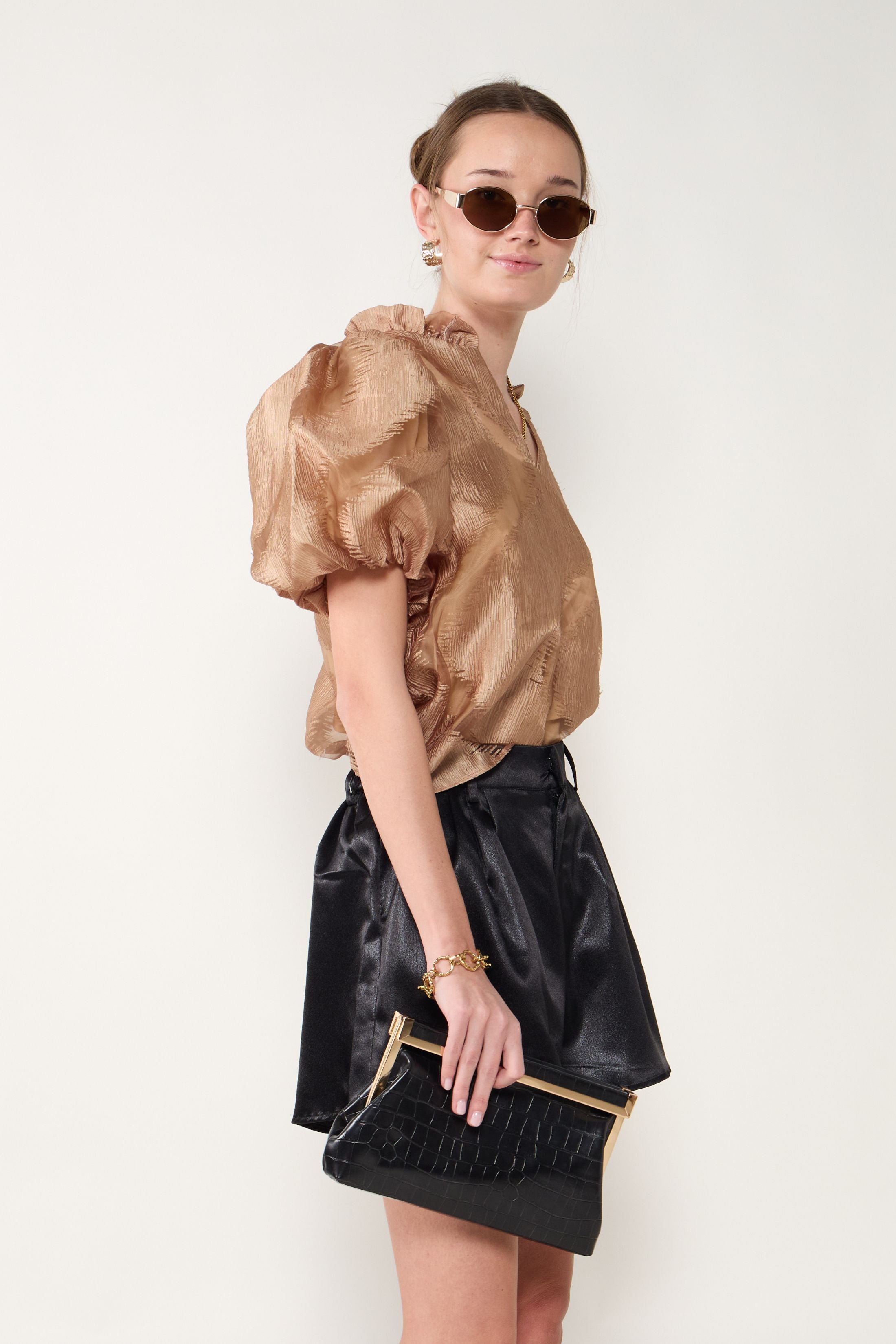 The Brielle Puff Sleeve Top is a feminine and stylish staple with playful puffed sleeves and a flattering silhouette. Perfect for dressing up or pairing with casual bottoms, it adds charm to any outfit.