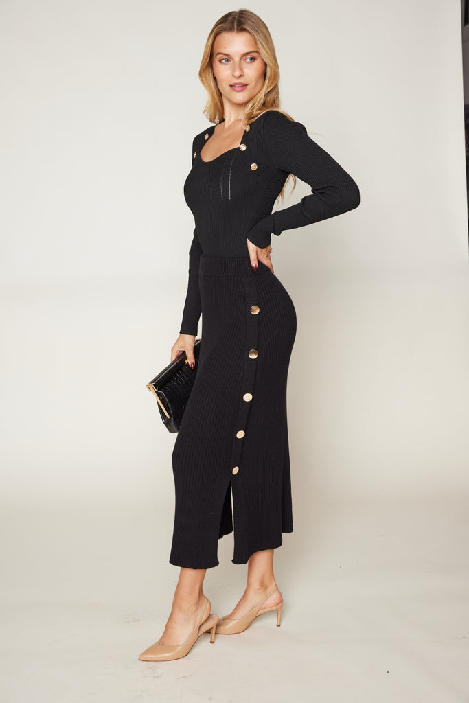 Feminine with an edge, the Classic Meets Sultry Maxi Skirt combines timeless elegance with a daring silhouette. Designed to move with you, this versatile piece can be styled effortlessly for both daytime polish and evening allure.