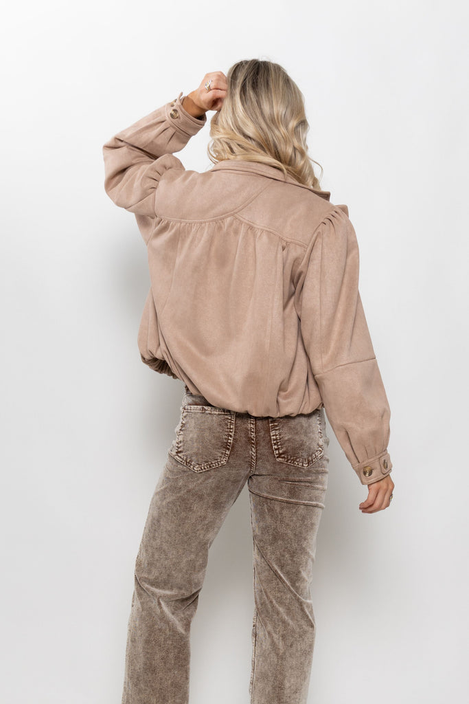 The Elle Faux Suede Buttoned Jacket brings a luxe, polished touch to any outfit with its soft suede texture and tailored silhouette. Effortlessly chic, it’s the perfect layering piece for cooler days.