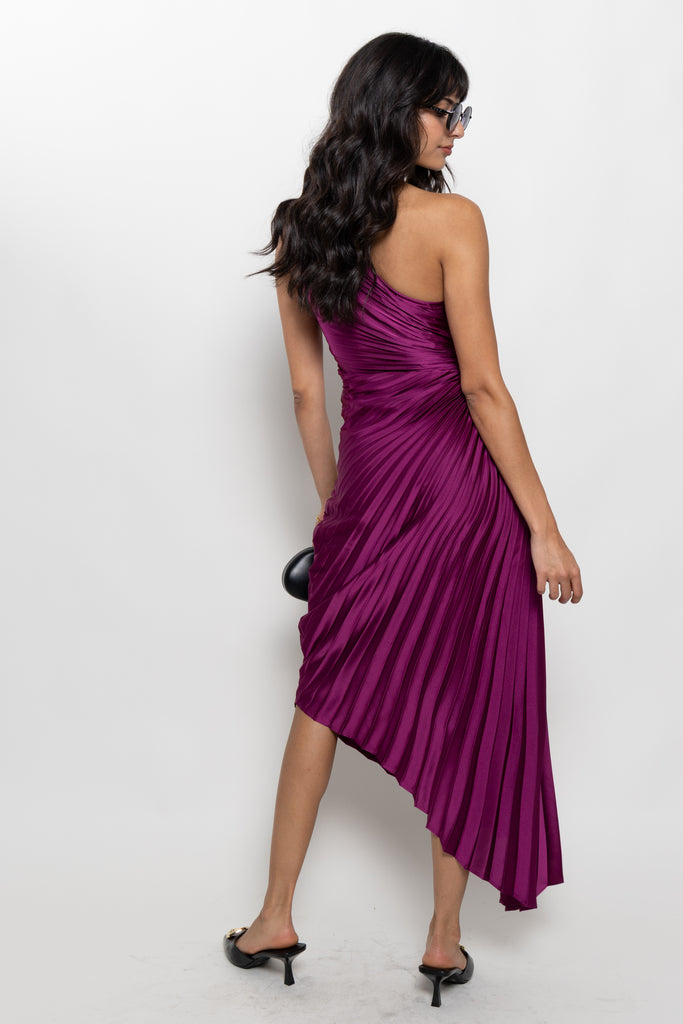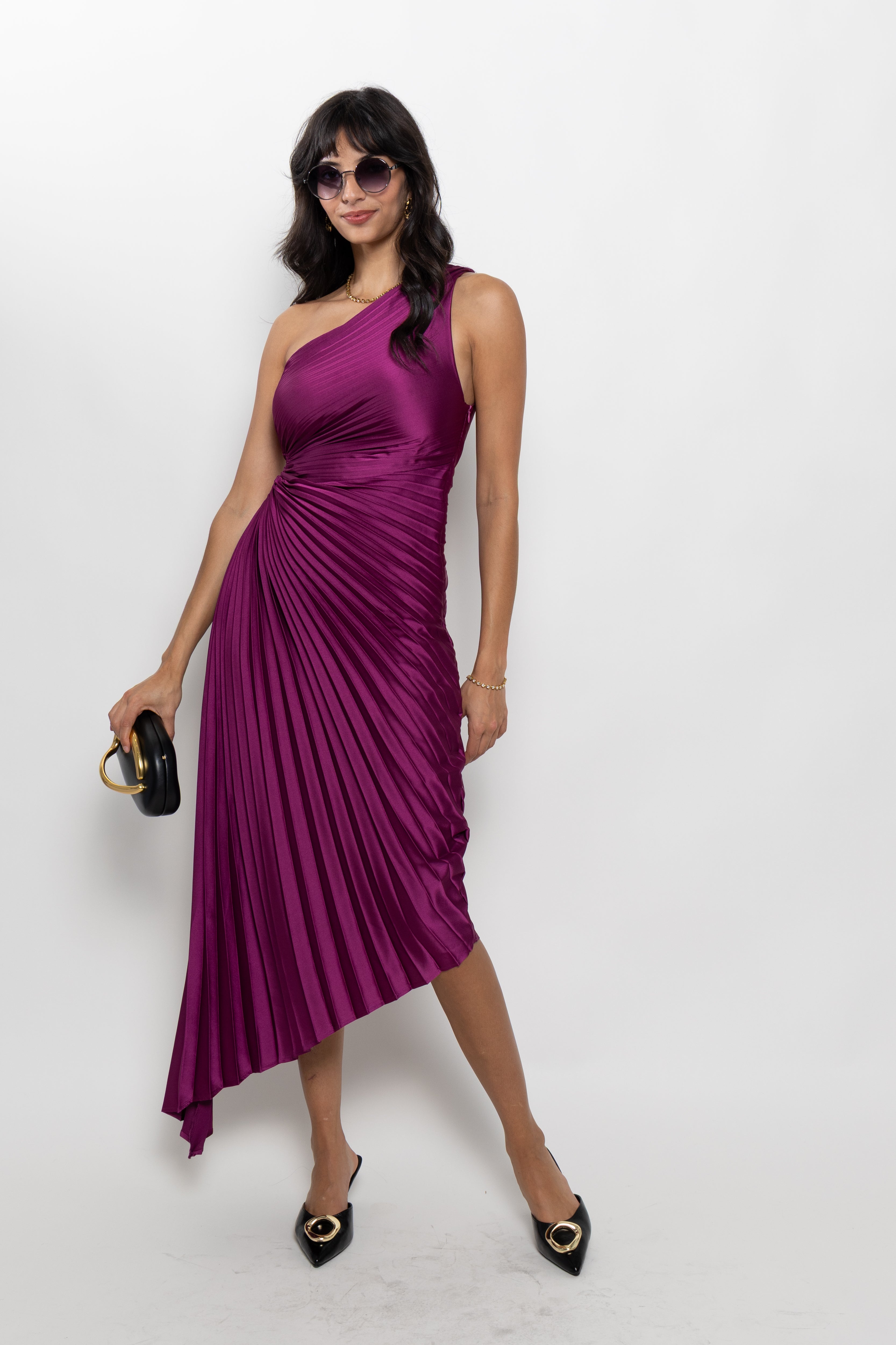 The Emma Pleated Midi Dress is an elegant and feminine piece with a flowy pleated skirt and flattering silhouette. Perfect for special occasions or polished daytime looks, it adds effortless sophistication.