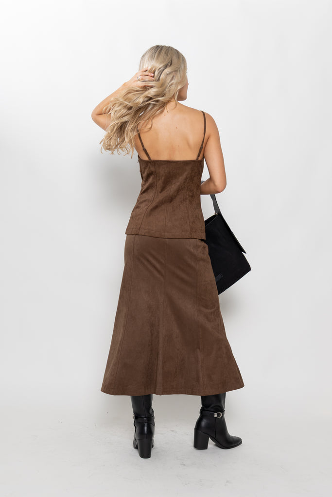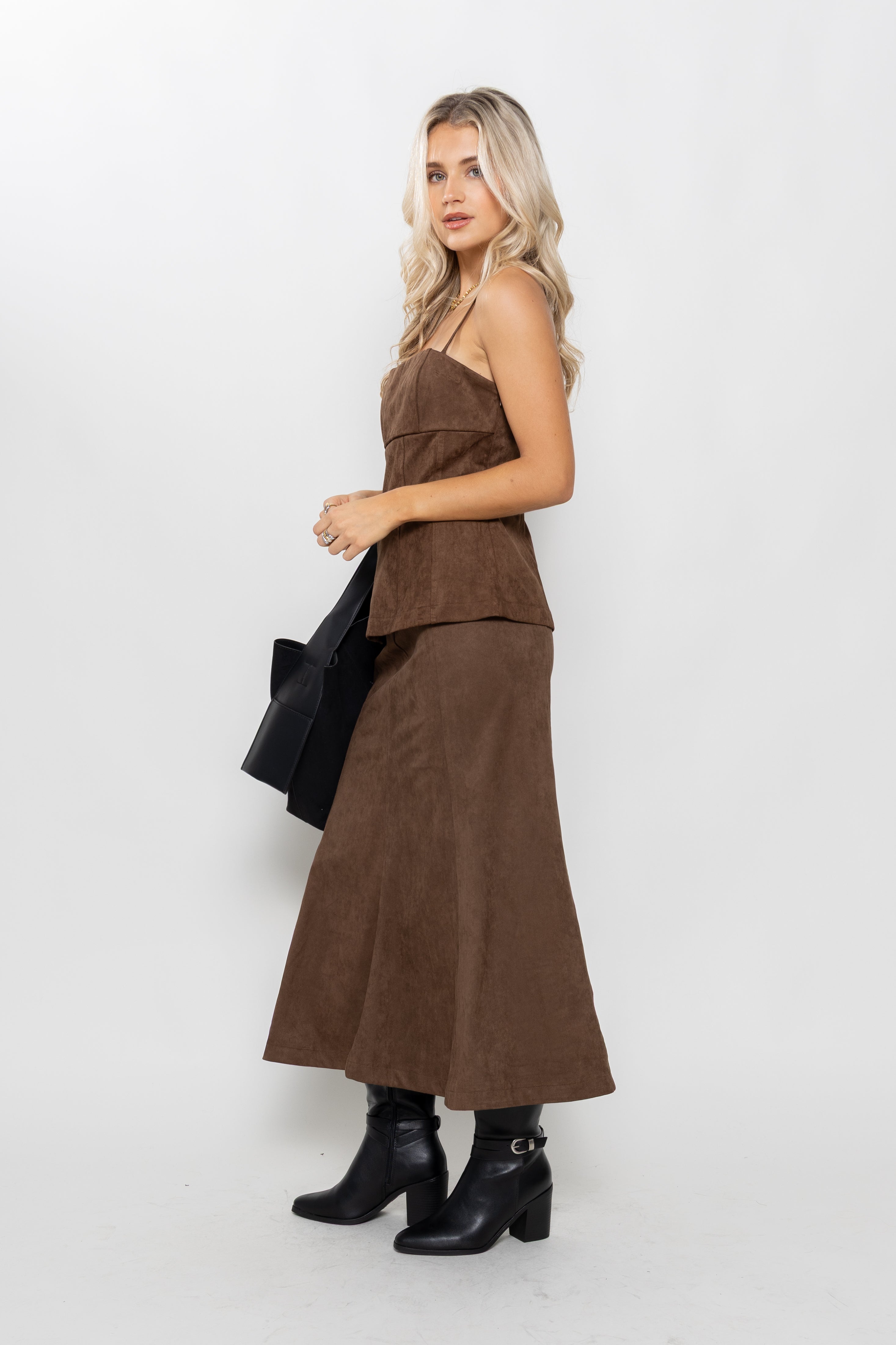 The Austin Fluted Hem Skirt is a playful and feminine piece with a flattering fit and flared hem detail. Perfect for dressing up or pairing with casual tops, it adds effortless movement to any outfit.