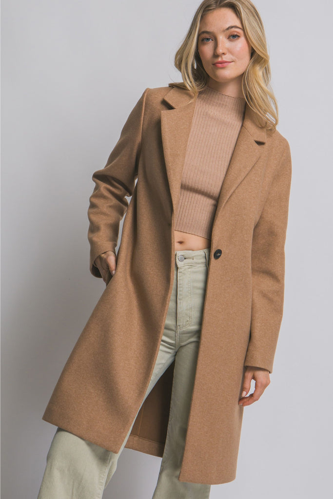 The Laken Coat is a timeless outerwear staple designed to elevate any look. With its longline silhouette and single-breasted closure, it delivers a polished finish that’s both classic and versatile.