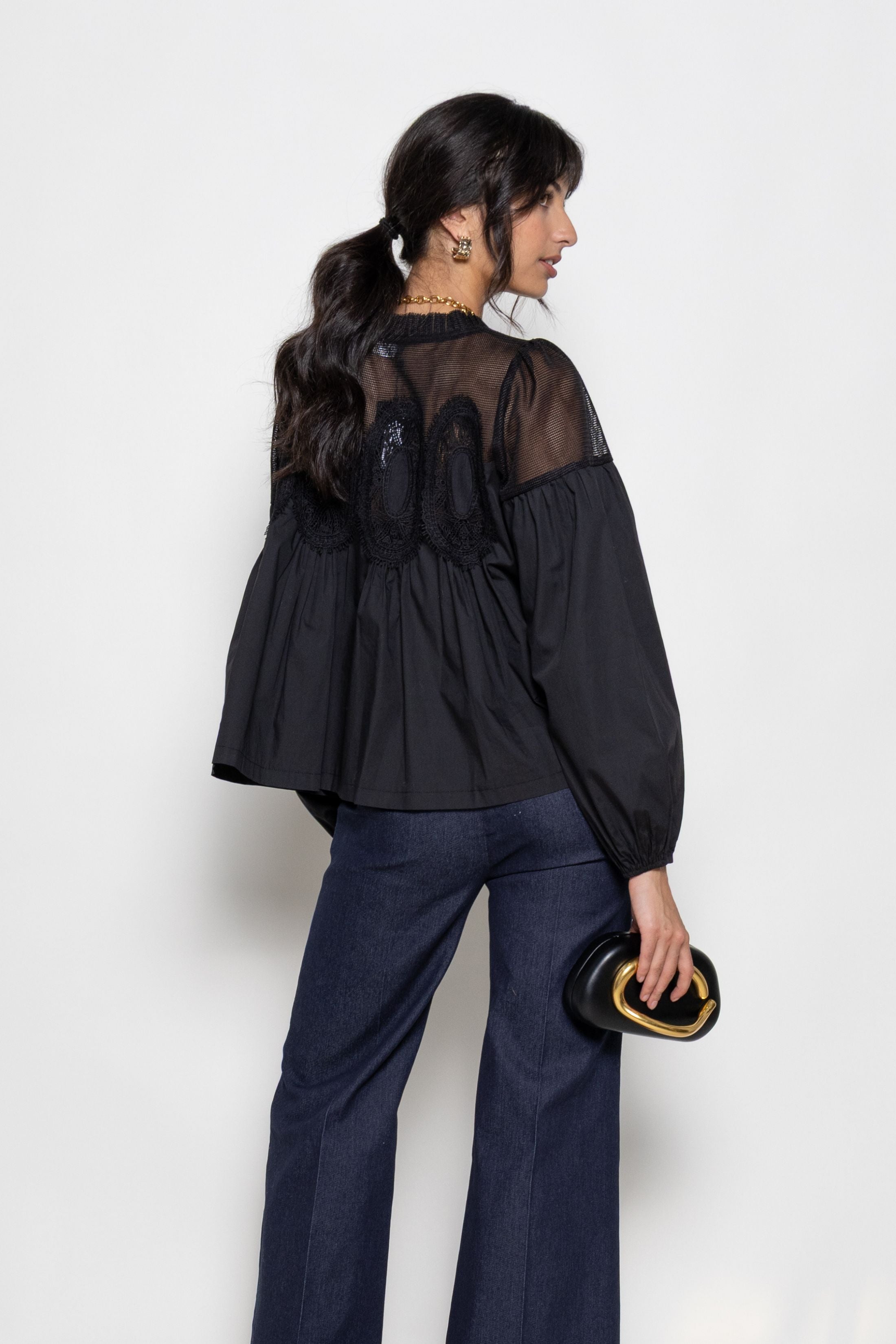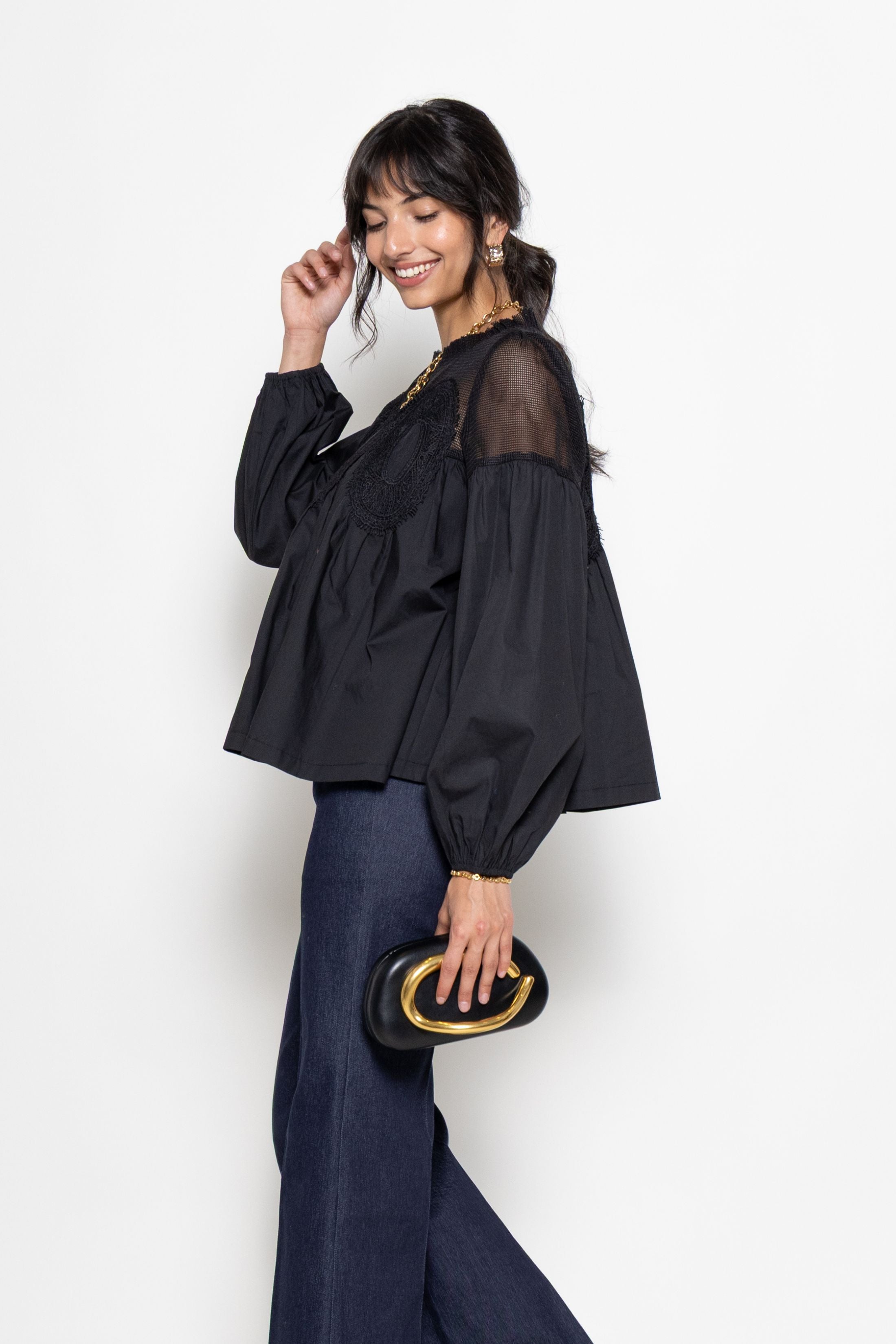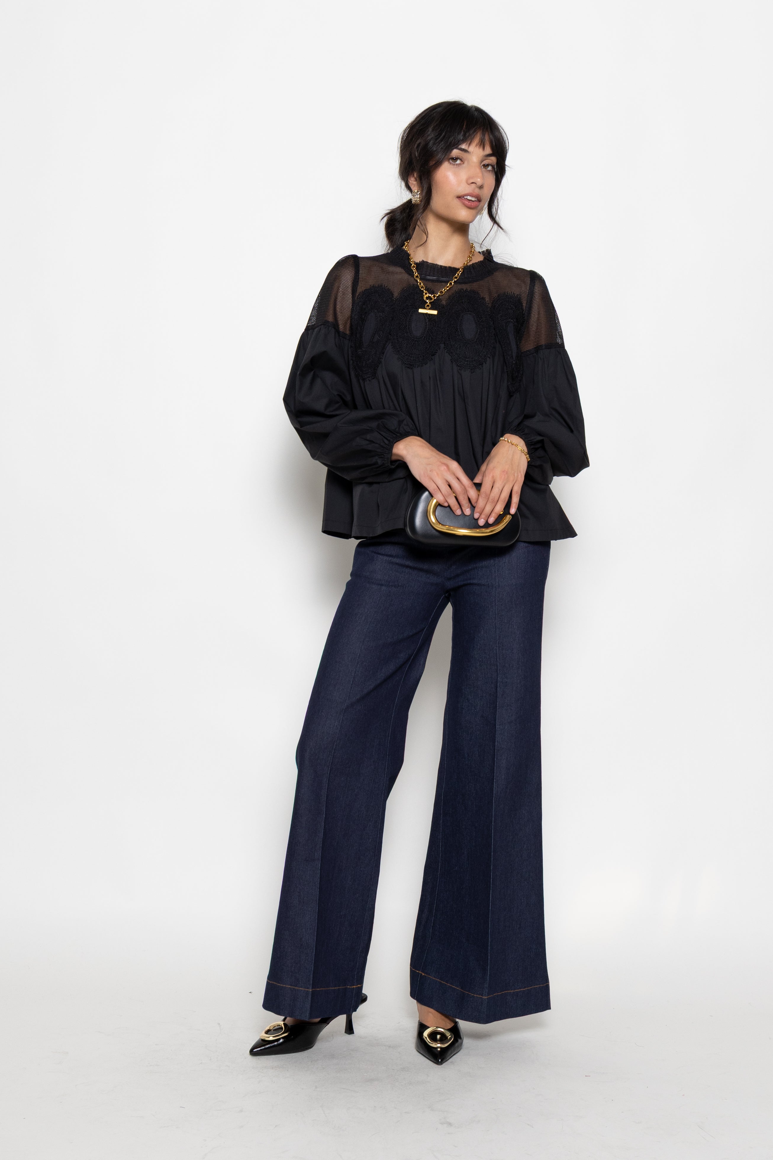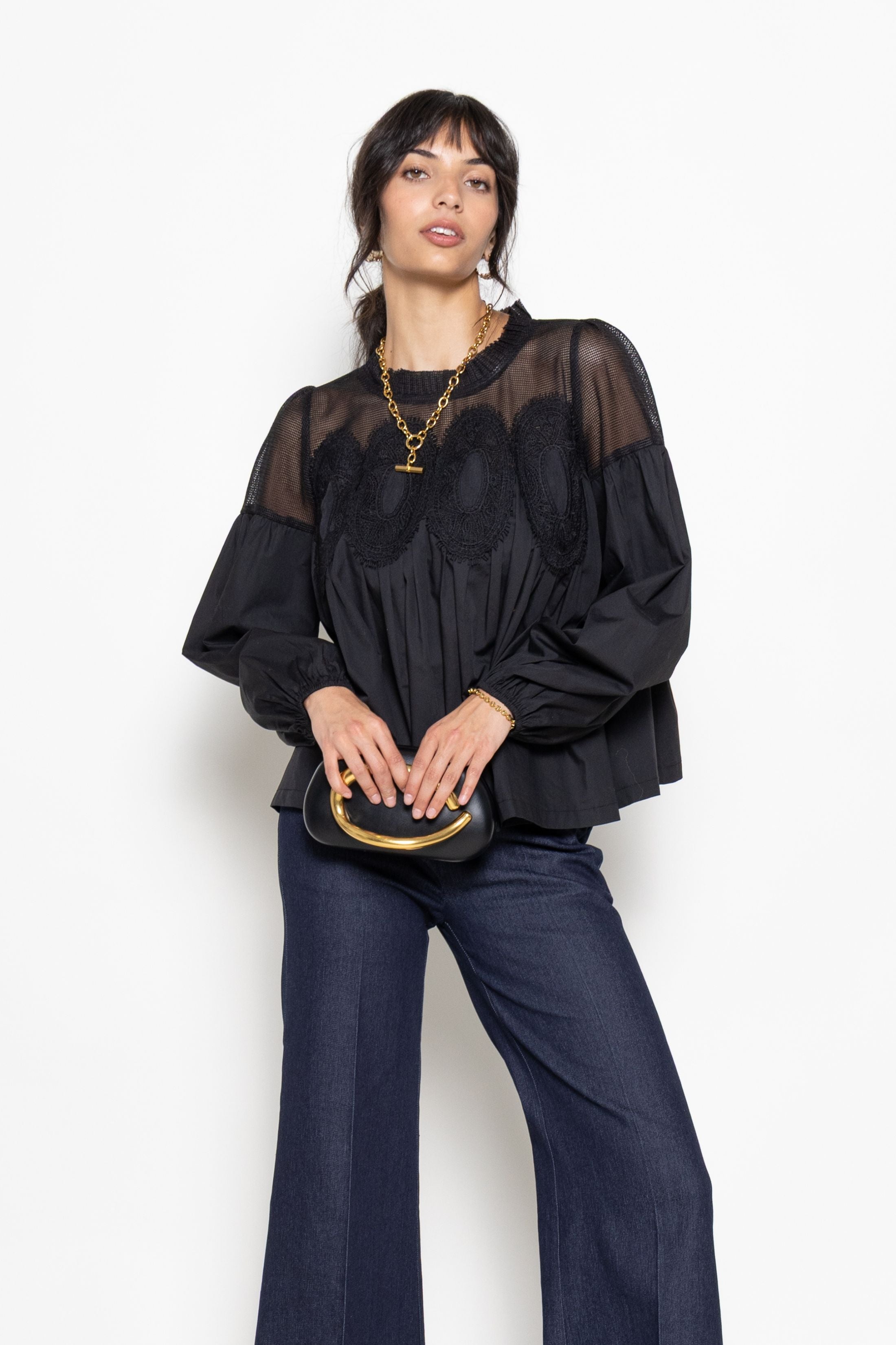 The Lilah Lace Applique Long Sleeve Blouse brings feminine elegance to any outfit with its delicate lace detailing and romantic silhouette. Perfect for pairing with trousers or denim, it’s a chic staple for any occasion.