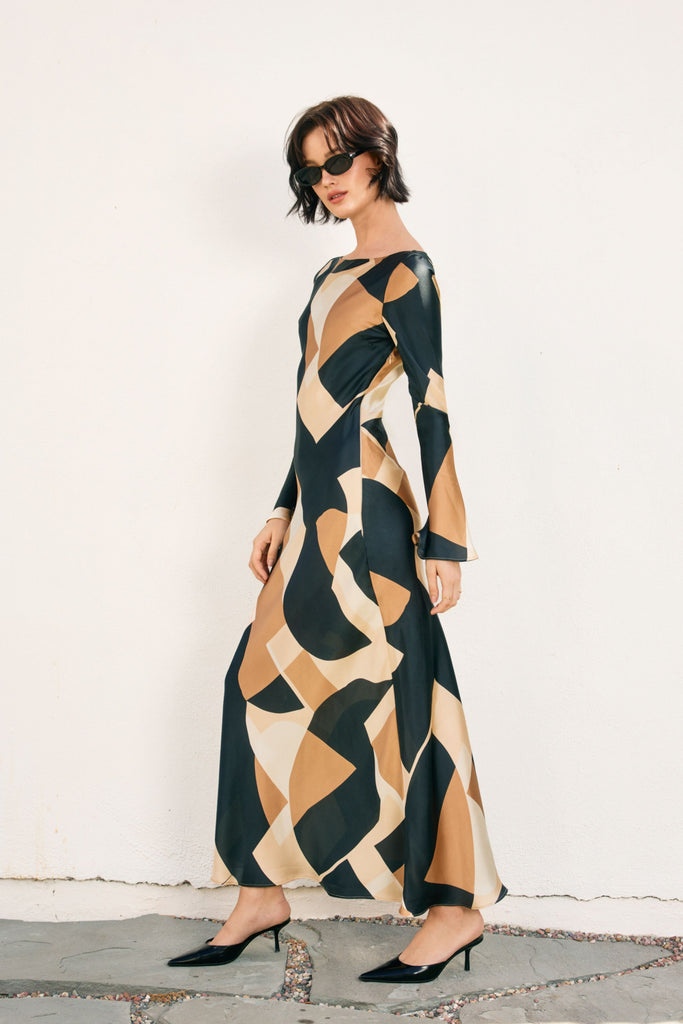 Bold yet feminine, the Lily Dress is crafted with a striking abstract print that brings modern artistry to a timeless silhouette. Featuring long sleeves and a flattering fit, this piece effortlessly transitions from daytime outings to elevated evenings.