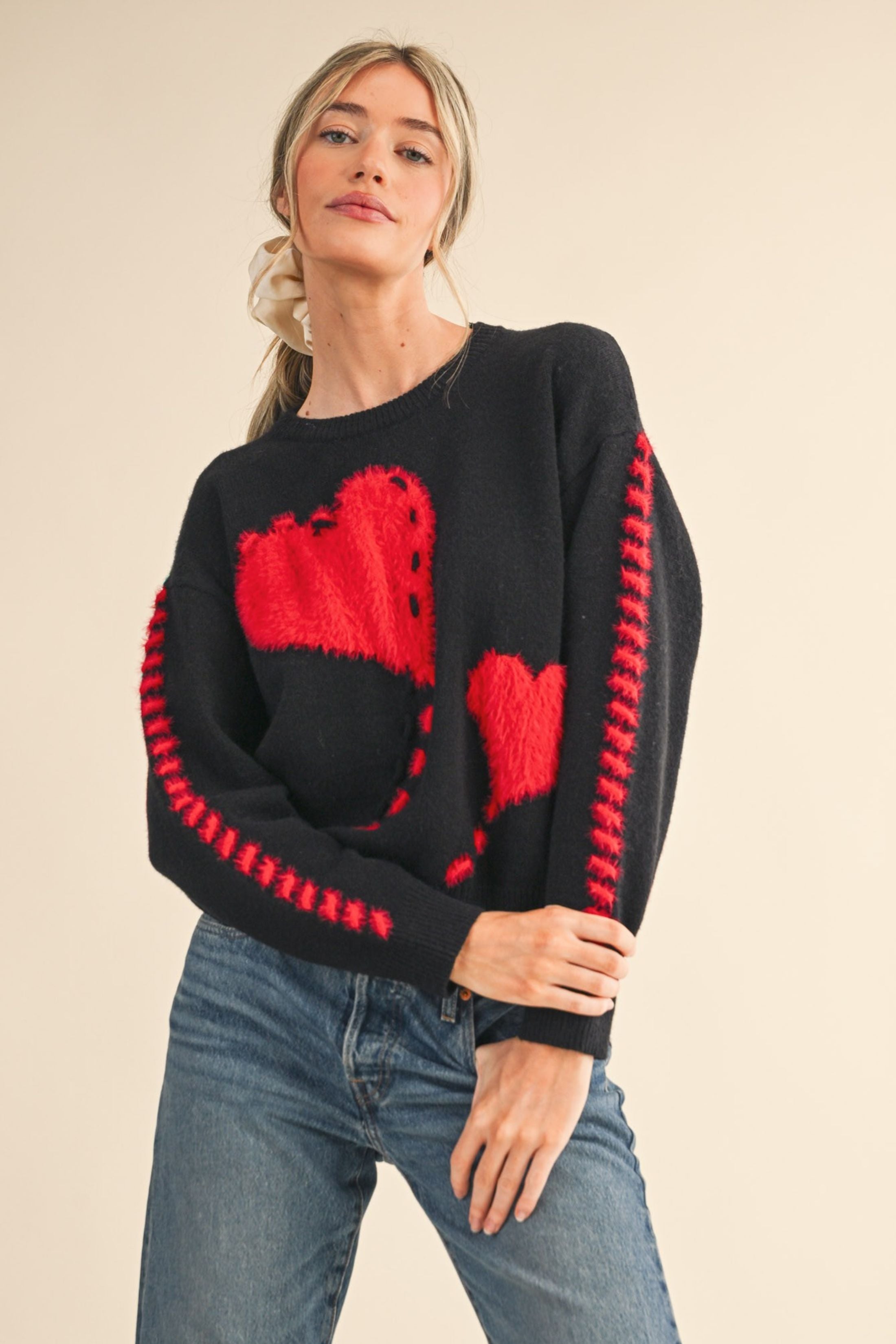 The Mae Heart Knit Sweater adds a playful touch to a cozy classic with its charming heart detail and soft knit feel. Designed for everyday comfort, it’s an easy statement piece you’ll love all season long.