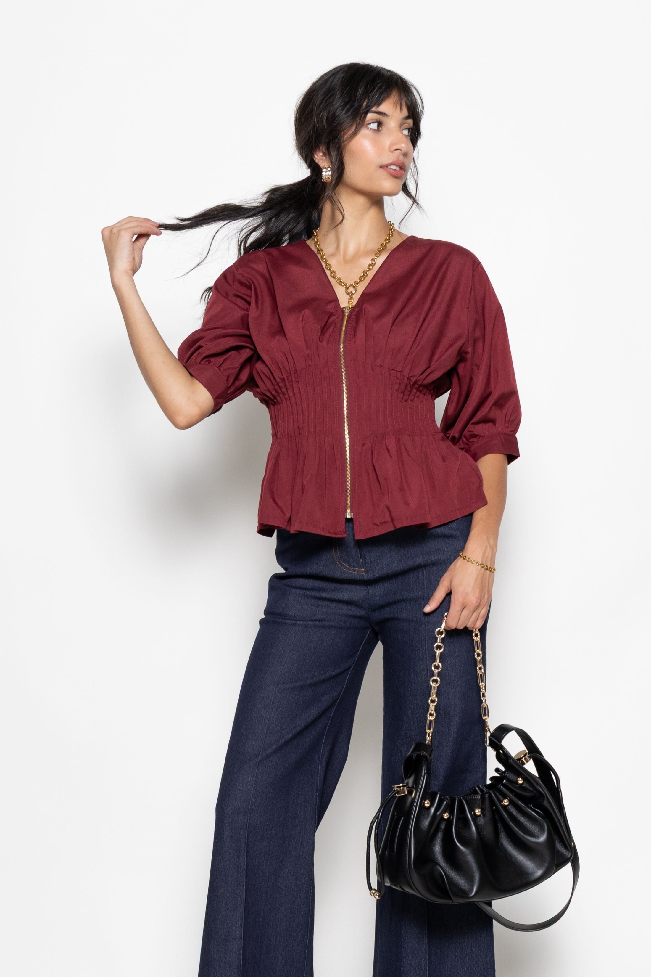 The Maison Ruched Zip Up Top combines sporty style with a flattering fit. Featuring a front zipper and gathered waist detail, it’s the perfect mix of casual comfort and polished appeal.