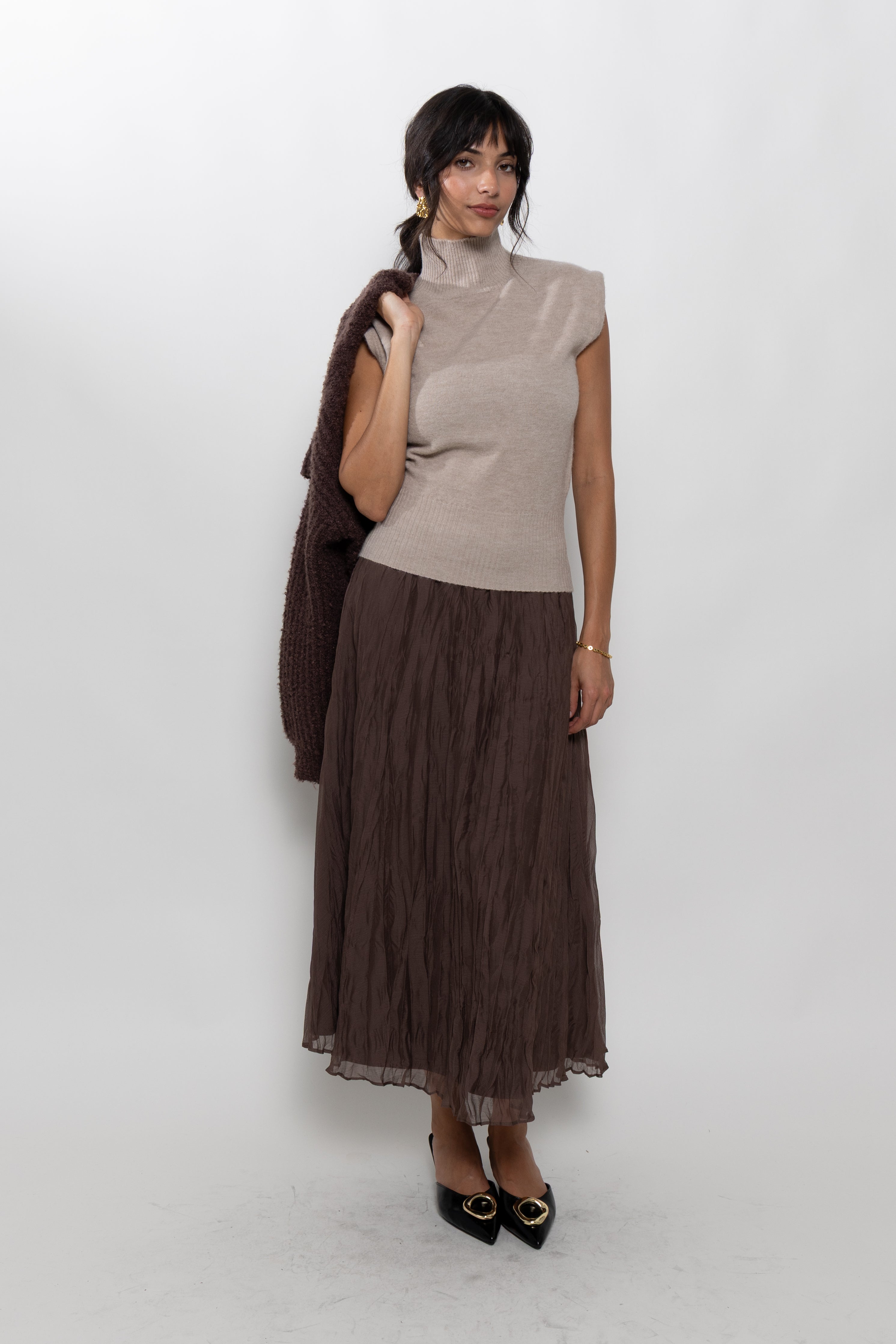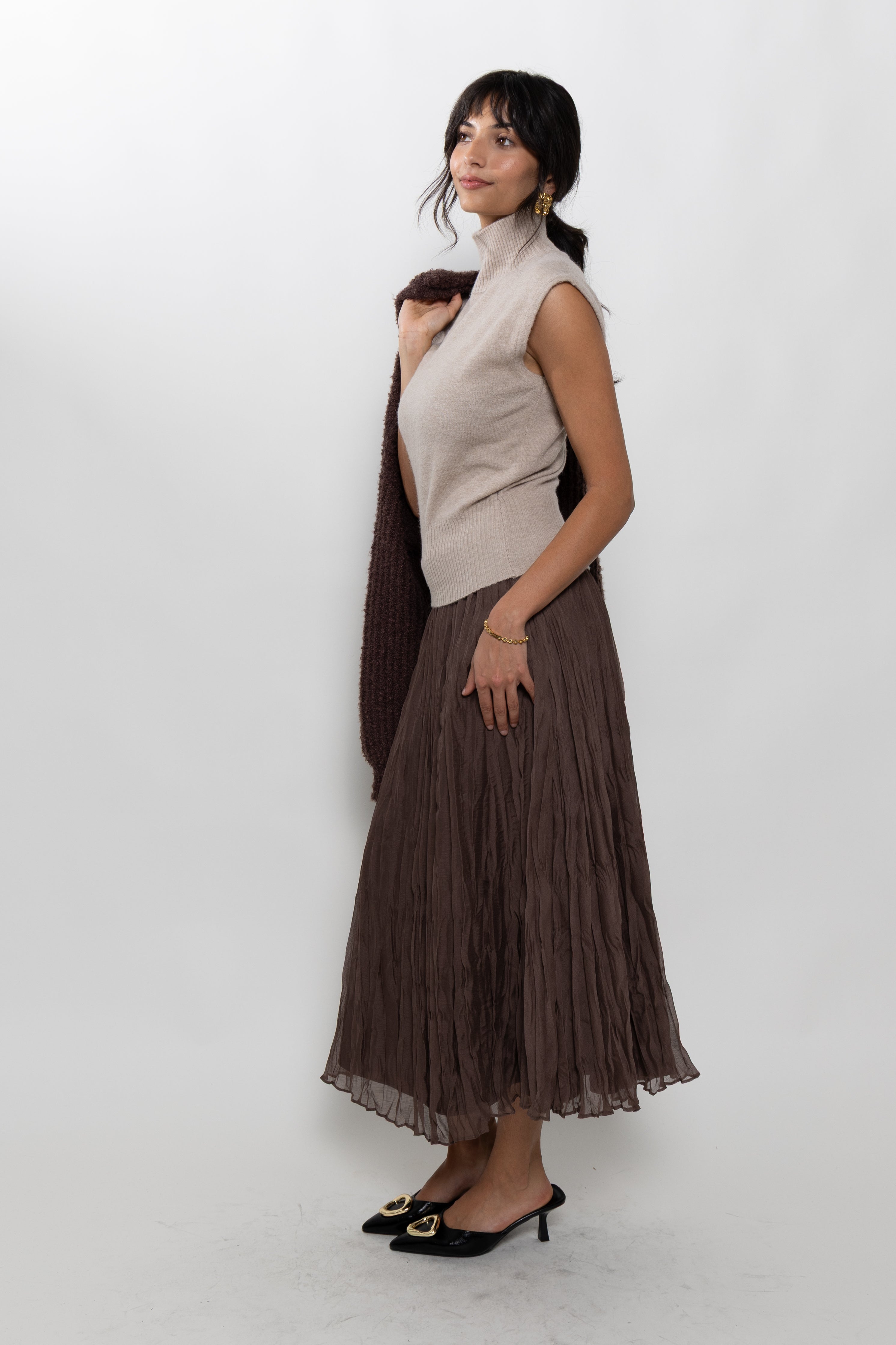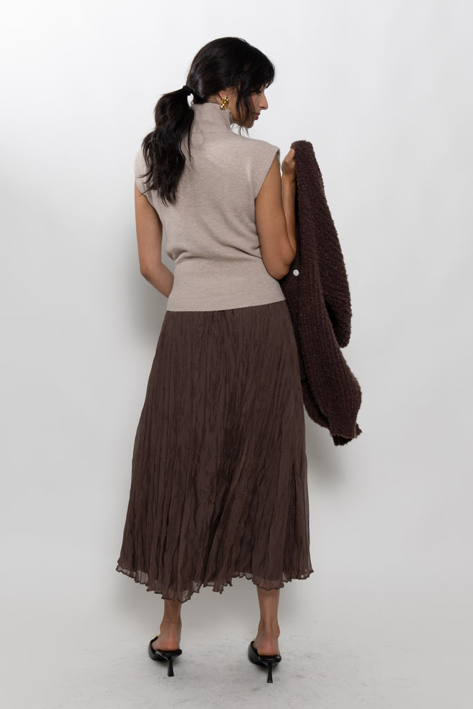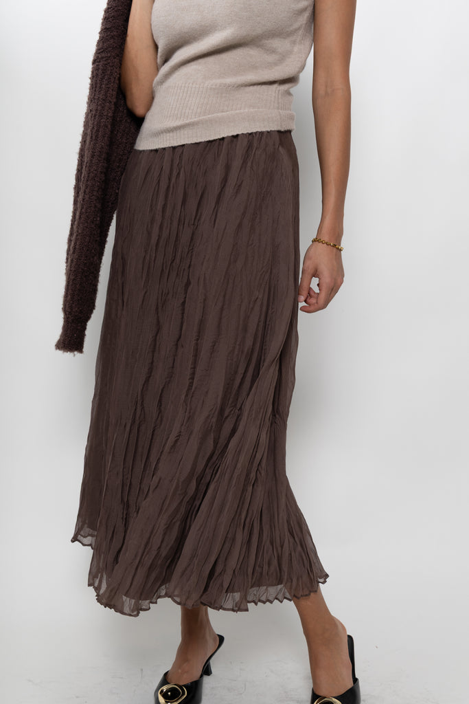 The Minnie Crinkled Chiffon Midi Skirt brings effortless elegance with its flowy silhouette and soft, textured fabric. Perfect for dressing up or down, it moves beautifully with every step.