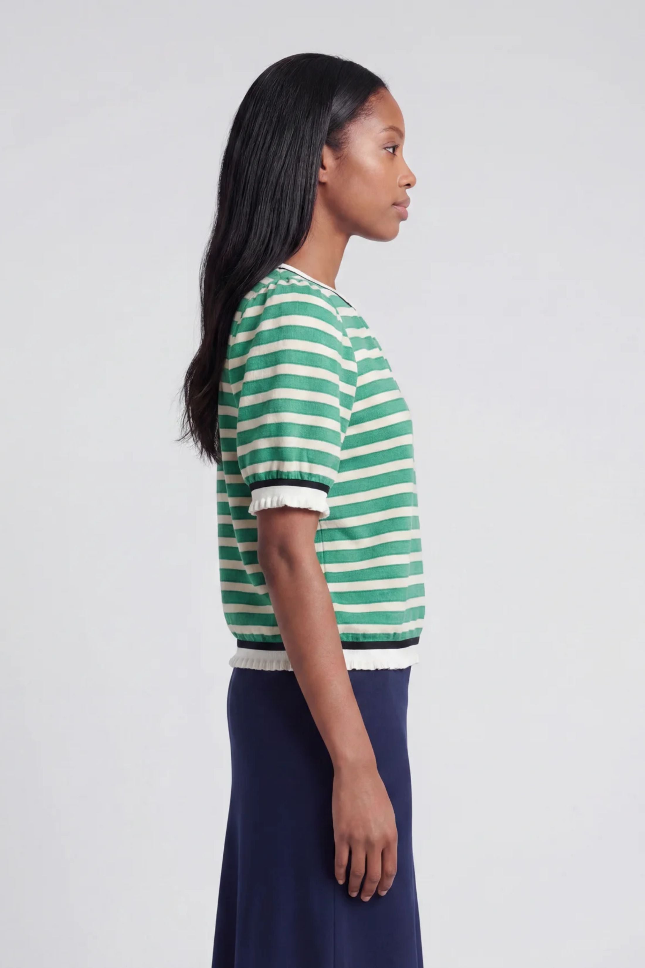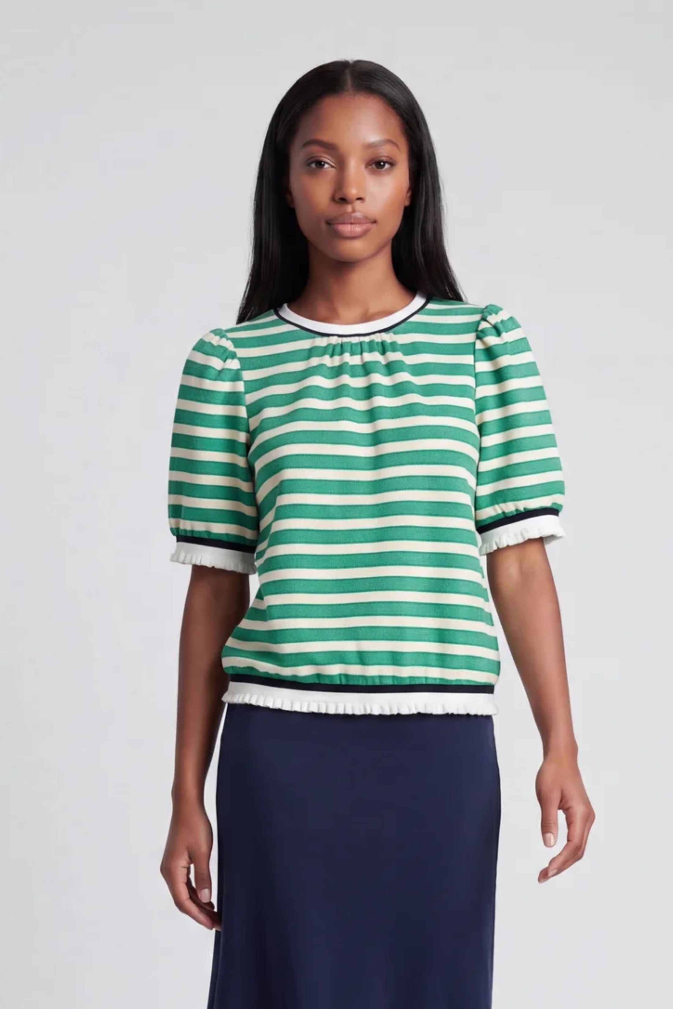 Make an effortlessly polished statement with the Paige Band Detailed Textured Stripe Knit Top, designed with subtle texture and modern stripe detailing for a refined everyday look. Soft yet structured, this knit is perfect for easy styling with a touch of elevated charm.