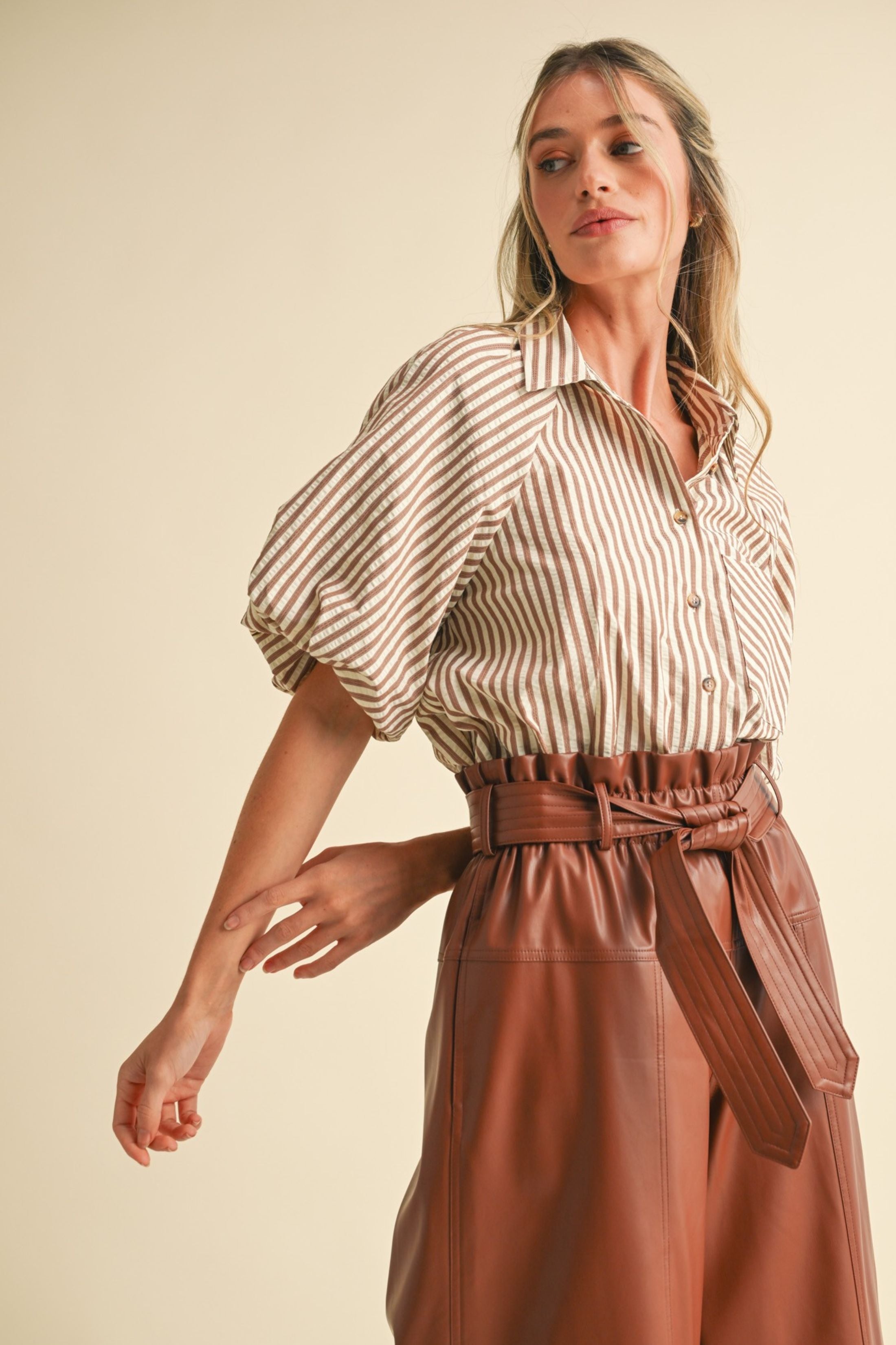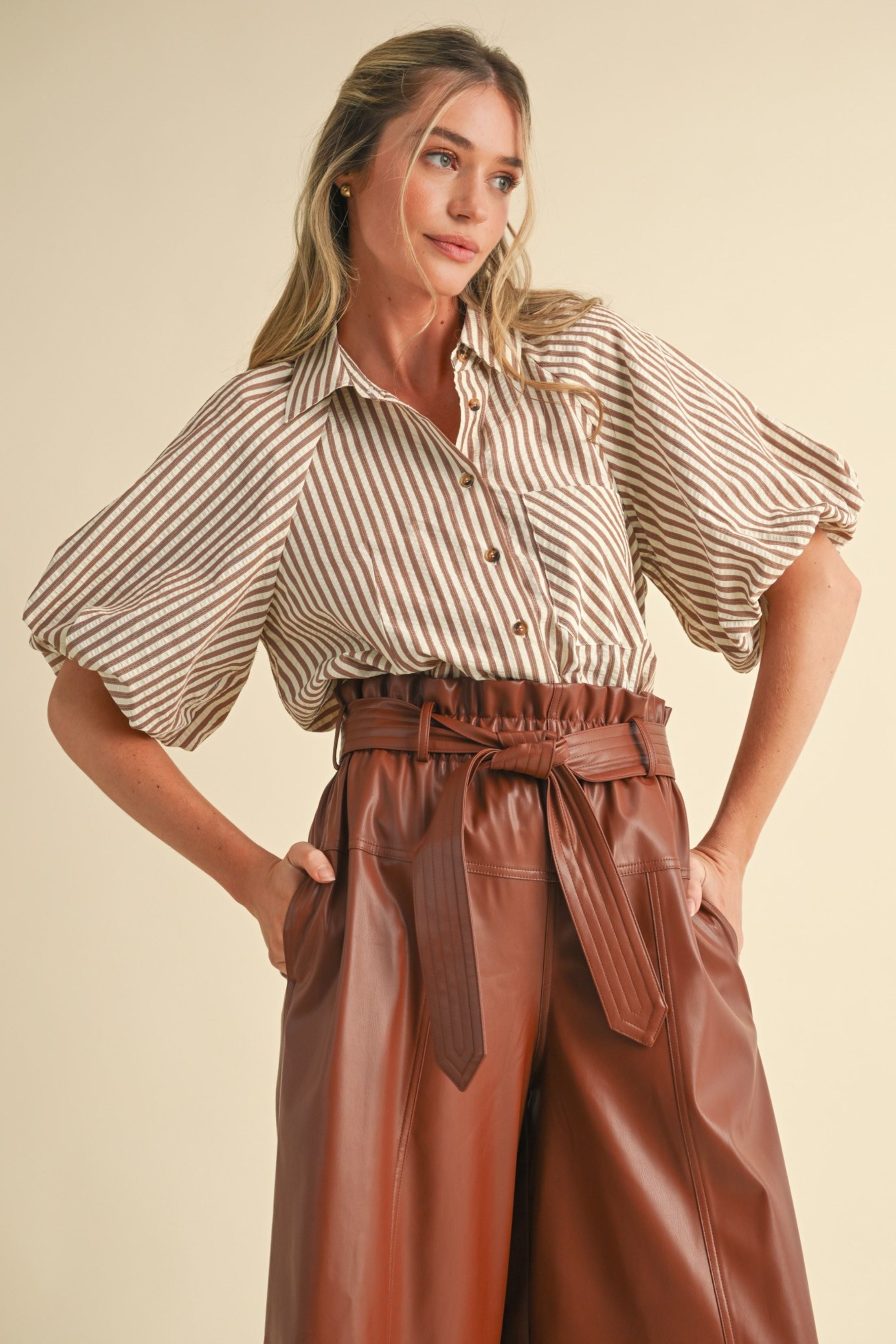 The Remi Balloon Sleeve Top elevates a classic silhouette with dramatic, voluminous sleeves for a stylish, modern look. Lightweight and versatile, it’s perfect for dressing up or keeping everyday outfits chic.
