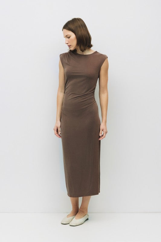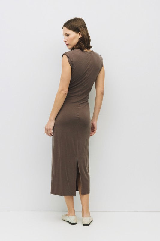 Effortlessly versatile, this short-sleeve dress features a classic round neckline and soft, comfortable fabric. Its solid color design makes it a wardrobe staple, perfect for layering with jackets and accessories or wearing on its own for a polished, everyday look.