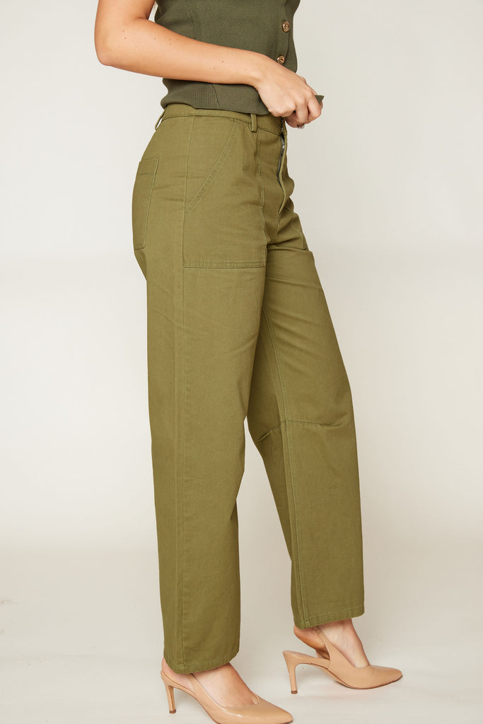 Utility meets effortless style in these wide-leg cropped cargo pants. Featuring oversized pocket details, a button closure, and a relaxed fit, they deliver both function and fashion. Perfect for pairing with a fitted tank or structured blouse, these pants bring a modern edge to any look.